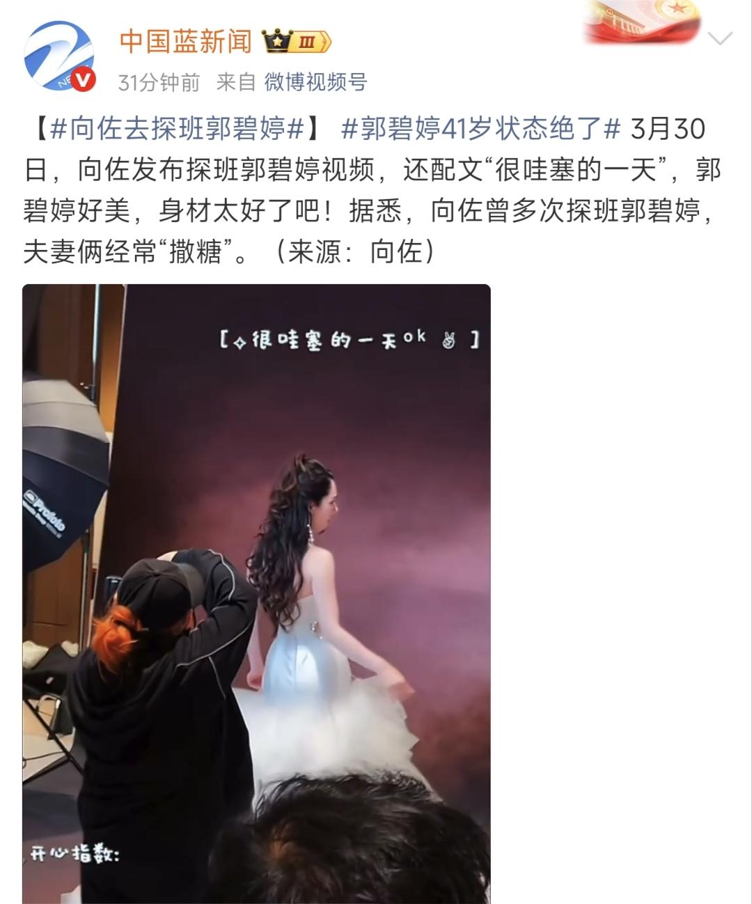 向佐探班郭碧婷又撒糖!浪子变宠妻狂魔,这反差也太绝了 3月30日,向佐晒出探班郭碧婷的视频,配文一句“很哇塞的一天”,镜头全程追着老婆跑,片场里两人互动亲昵得不行,网友都调侃这是“公费撒糖”,甜得齁人。 早年间的向佐还是贴着“浪子”标签的主儿,婚变传闻隔三差五就冒出来,面对争议只会沉默冷处理,连郭碧婷孕期、产后都鲜少公开维护,那时候全网都替郭碧婷委屈,觉得这段豪门婚姻走不长。 可现在倒好,向佐成了圈内有名的“探班专业户”,只要郭碧婷外出工作,他次次都奔赴片场陪伴,还频繁晒日常秀恩爱,前后对比简直像换了个人。 视频里41岁的郭碧婷状态更绝,妆容精致、身材在线,比刚出道时多了几分温婉成熟,松弛又明艳,完全看不出真实年龄。结婚后她半退圈陪家人,这次复工被向佐全程陪着,也是难得公开露脸。 这事一出来,网友们直接炸了锅: 有网友晒偶遇感慨:“其实这一家挺幸福的,向太又很喜欢郭碧婷,向佐对老婆也很好,女儿生下来就是小公主啊。” 还有人忍不住吐槽:“向佐这变化也太大了!以前是被全网骂的浪子,现在成了事事奔赴的宠妻狂魔,好婚姻真能改头换面啊!” 也有人夸郭碧婷:“状态绝了!果然幸福都写在脸上,41岁还这么松弛明艳,一看就是被好好爱着的。” 谁能想到,当年被全网唱衰的豪门婚姻,如今却活成了让人羡慕的样子。向佐的偏爱、向太的疼惜、郭碧婷眼里的松弛,还有被宠成小公主的女儿,早就把“豪门必狗血”的偏见打碎了。婚姻好不好,从来都不用靠嘴说,全藏在两个人的相处细节里,藏在郭碧婷笑起来的眉眼间。 你们被这家人的日常甜到了吗?