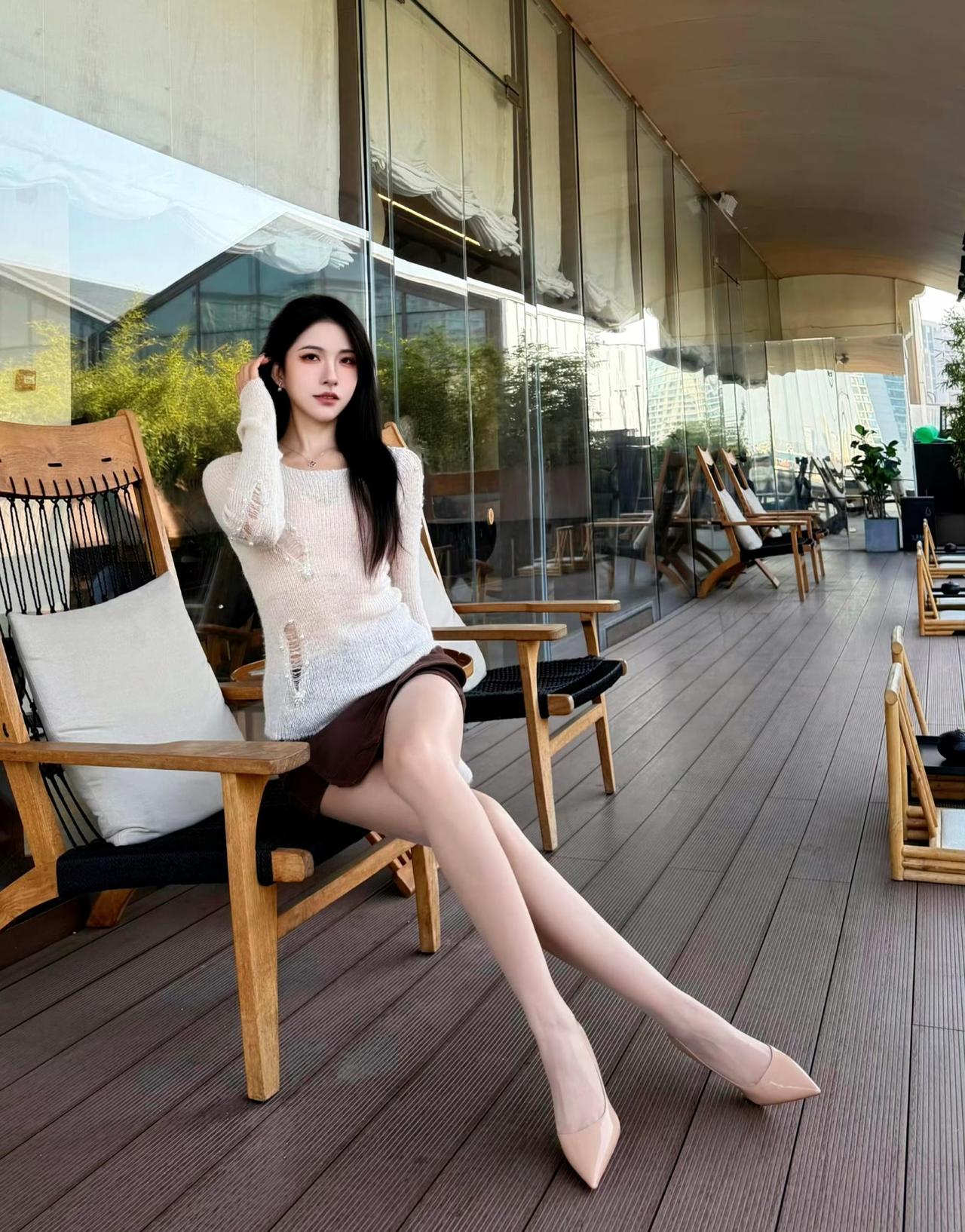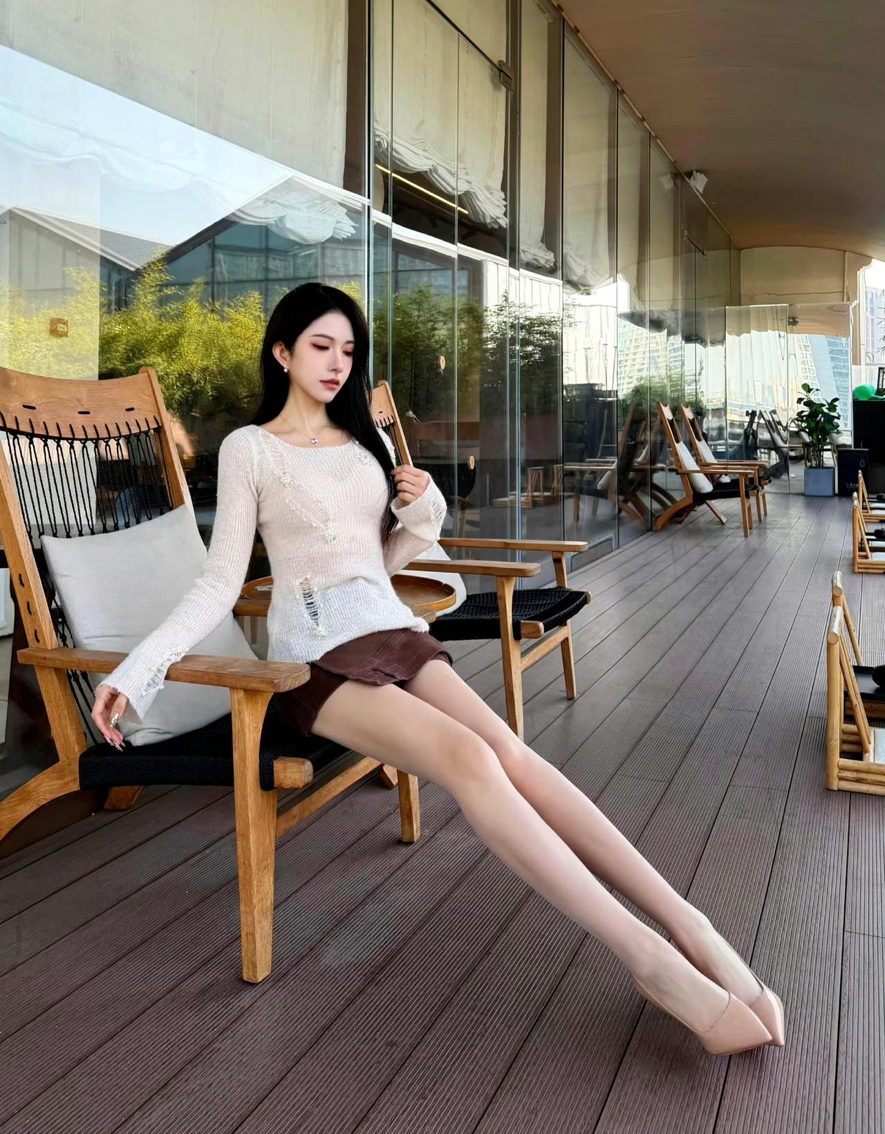 这套是温柔轻熟松弛风,核心是渐变针织+棕调短裙的搭配:渐变针织自带温柔松弛感,短