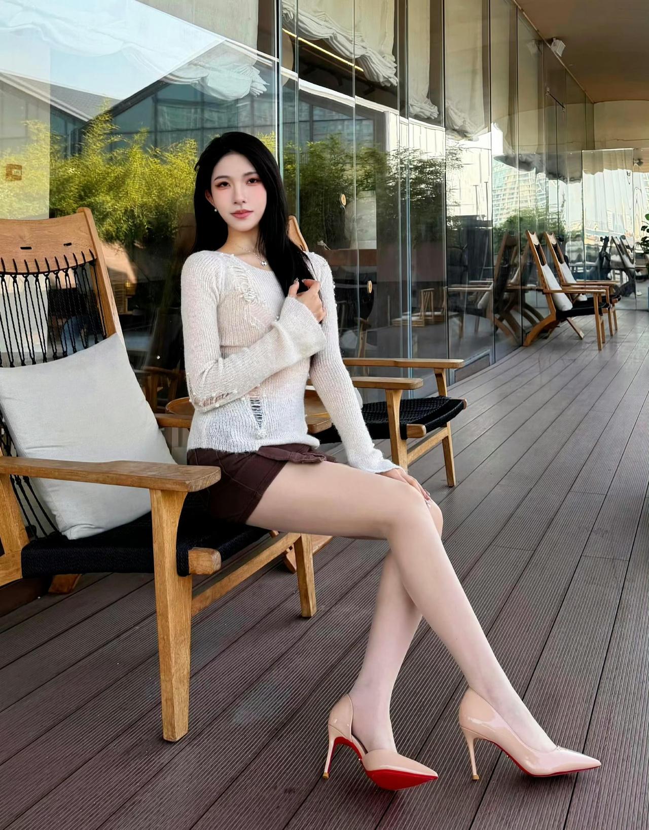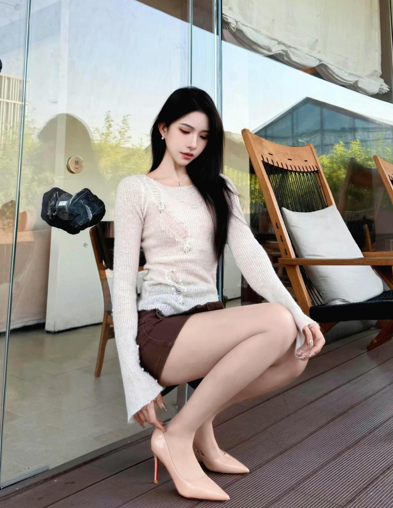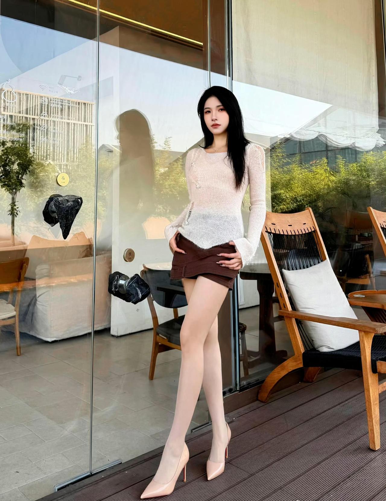 这套是温柔轻熟松弛风,核心是渐变针织+棕调短裙的搭配:渐变针织自带温柔松弛感,短款版型显利落,搭配裸色高跟鞋强化轻熟精致感,舒适又有气质。灰调针织穿搭