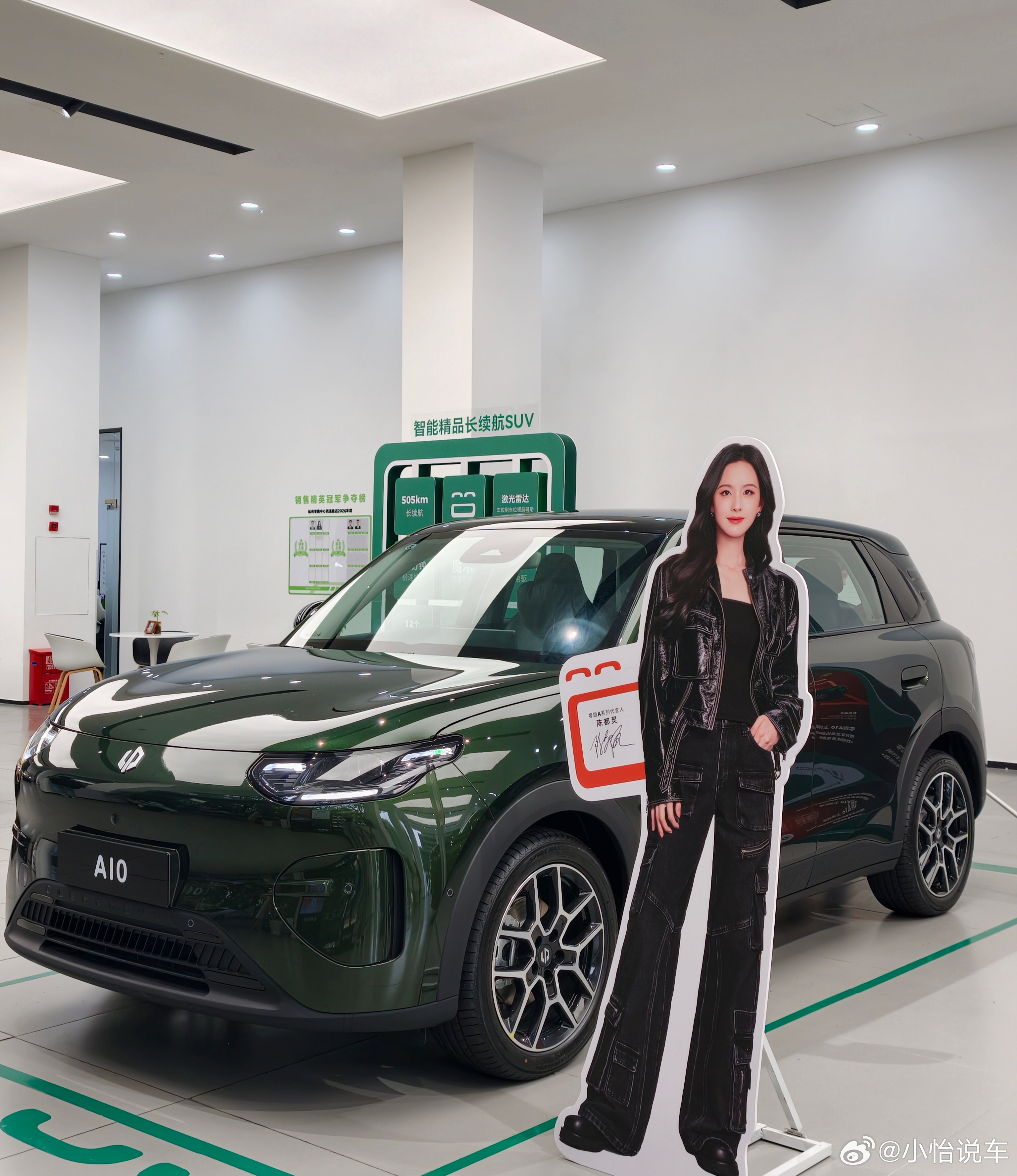 今天来看陈都灵代言的零跑a10 ,一进门就看到都灵的人形立牌,真的太美了!车子也