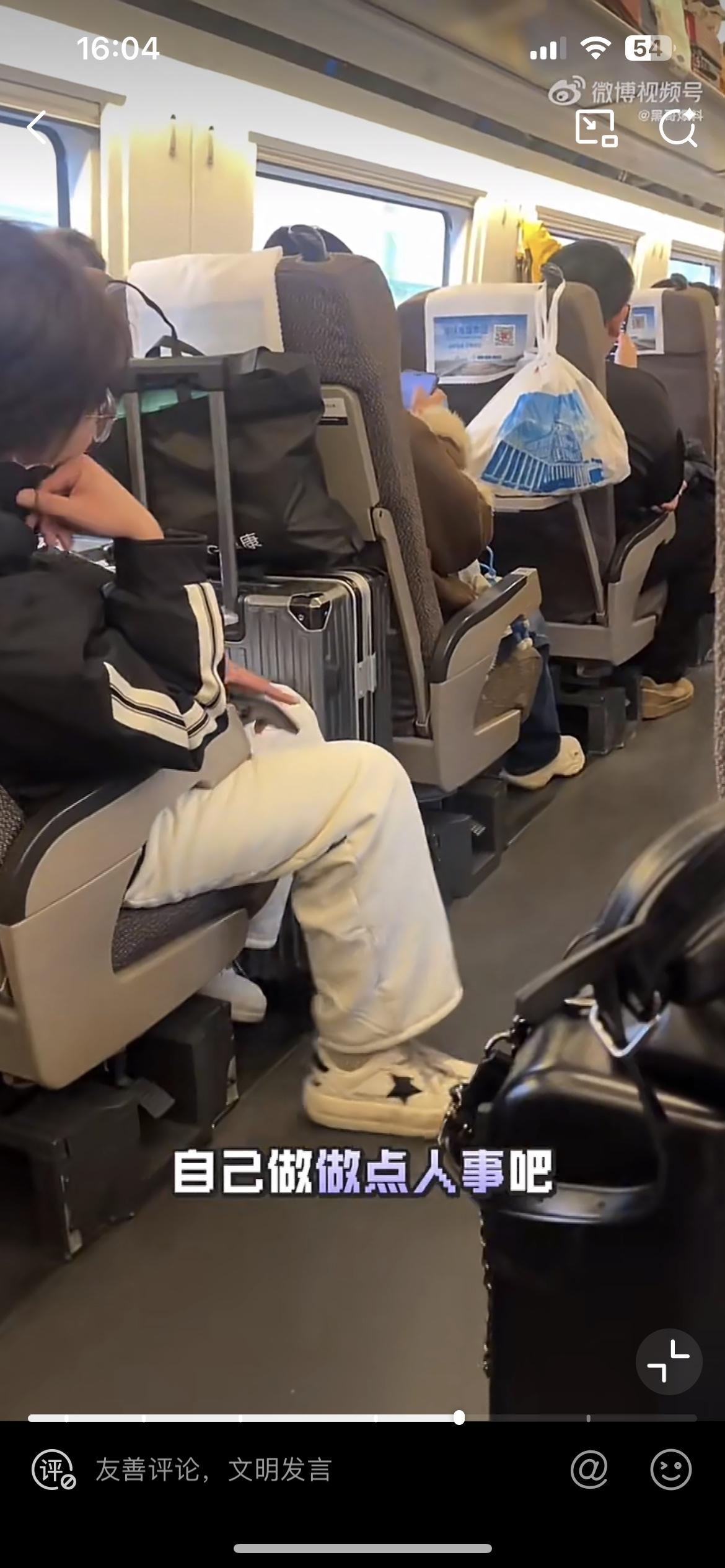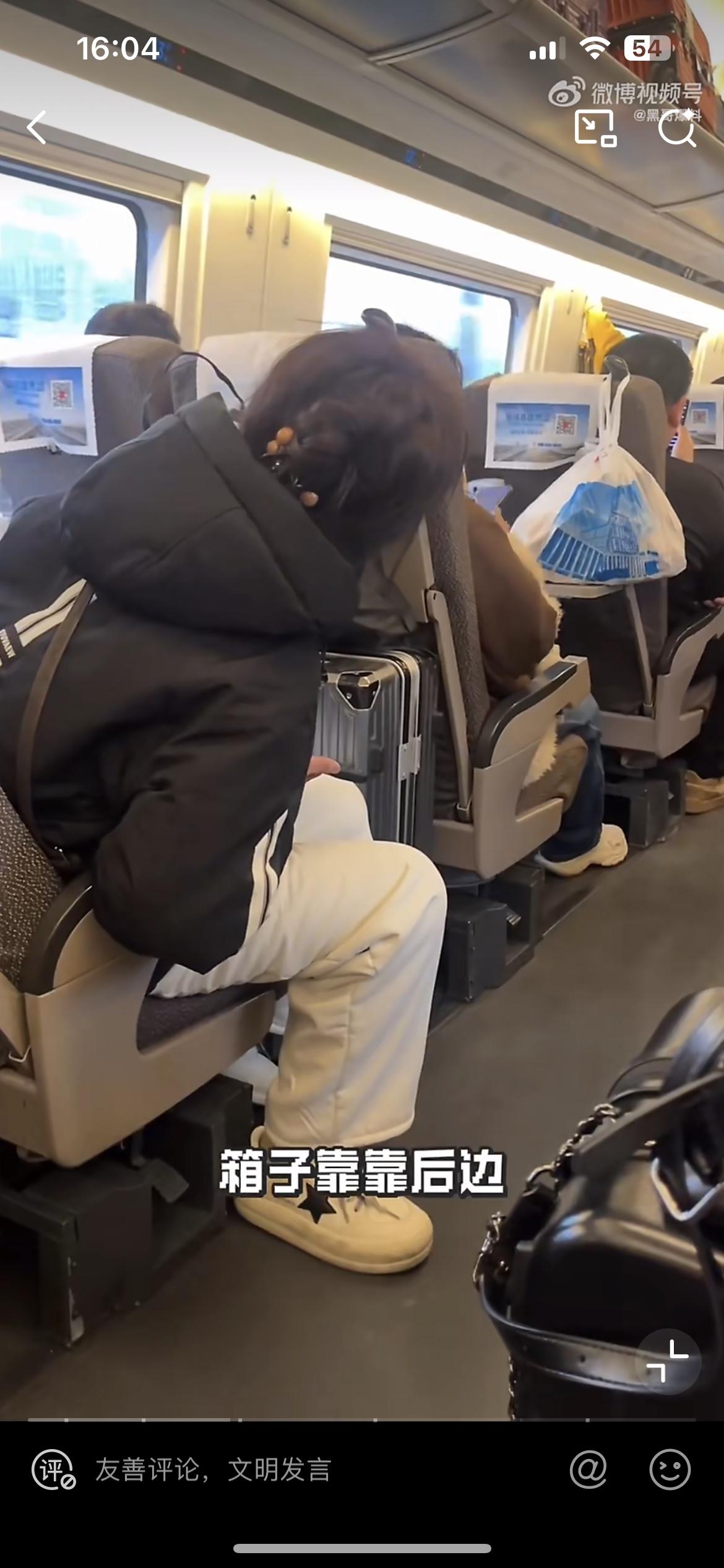 高铁上的奇葩一幕,小仙女放了个硕大的箱子在座椅后背,前面的女孩后靠座椅受阻,没想到后面的小仙女破防了,大骂她不要脸,明明自己椅子都是往后靠的,可是偏偏不让别人靠。高铁的座椅设计成可调节的,就是让大家长途出行坐着更舒服,任何人都有调节座椅的权利。这个小仙女不知道是行李箱里面有什么宝贝,特别金贵,要放在自己座椅前面,明明足够的空间却被她塞满了,影响了前面乘客的乘坐体验,却还倒打一耙,骂人家不要脸,这个小仙女不懂得尊重他人,乘坐公共交通工具应该相互体谅,不应该随意侵占他人利益。
