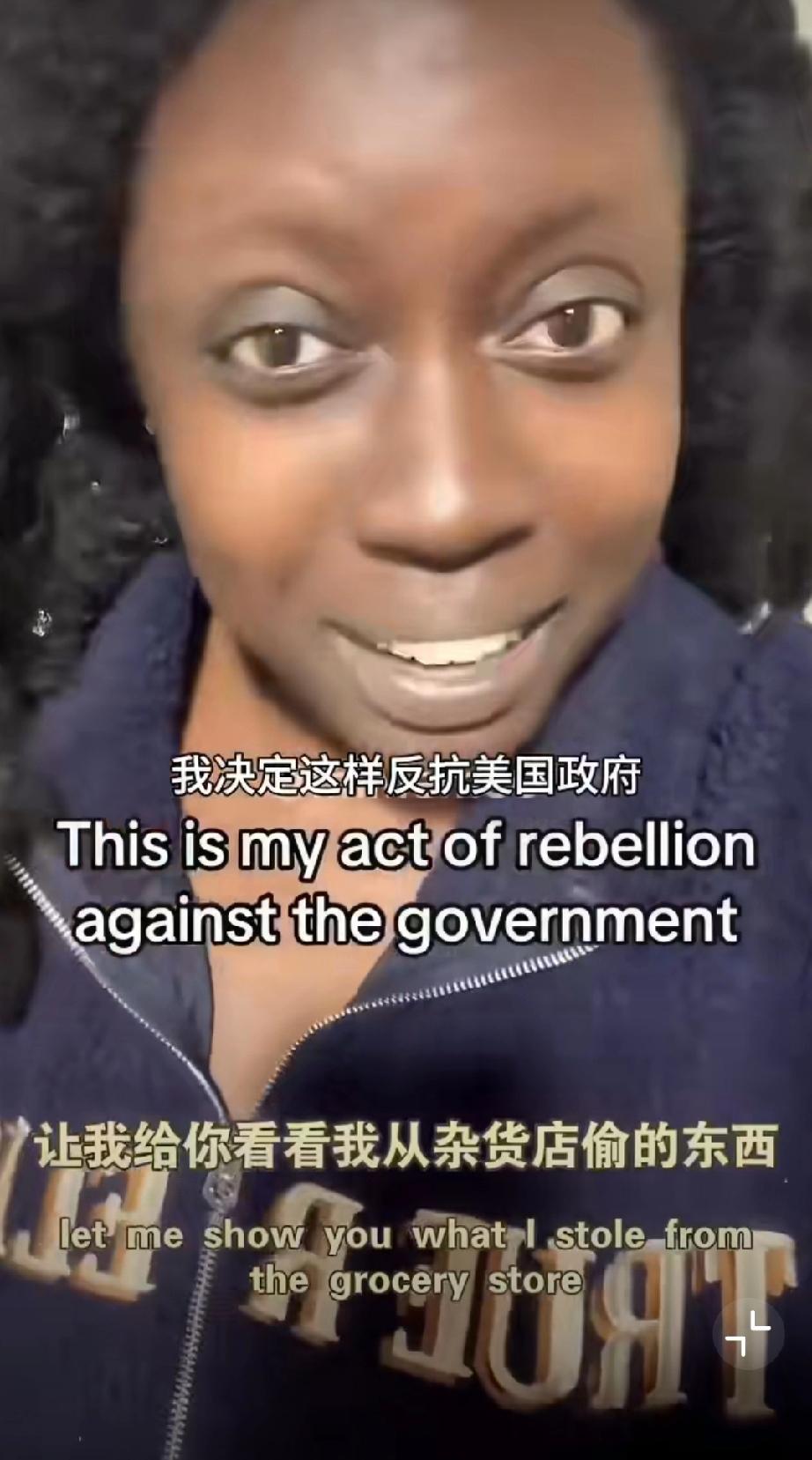这名美国女子发了个视频,表示她要反抗美国政府,反抗方式是:从杂货店里面偷东西。