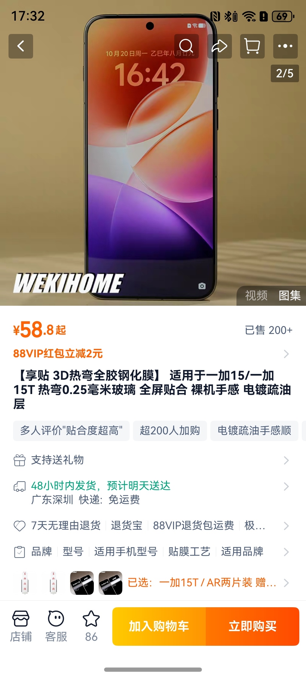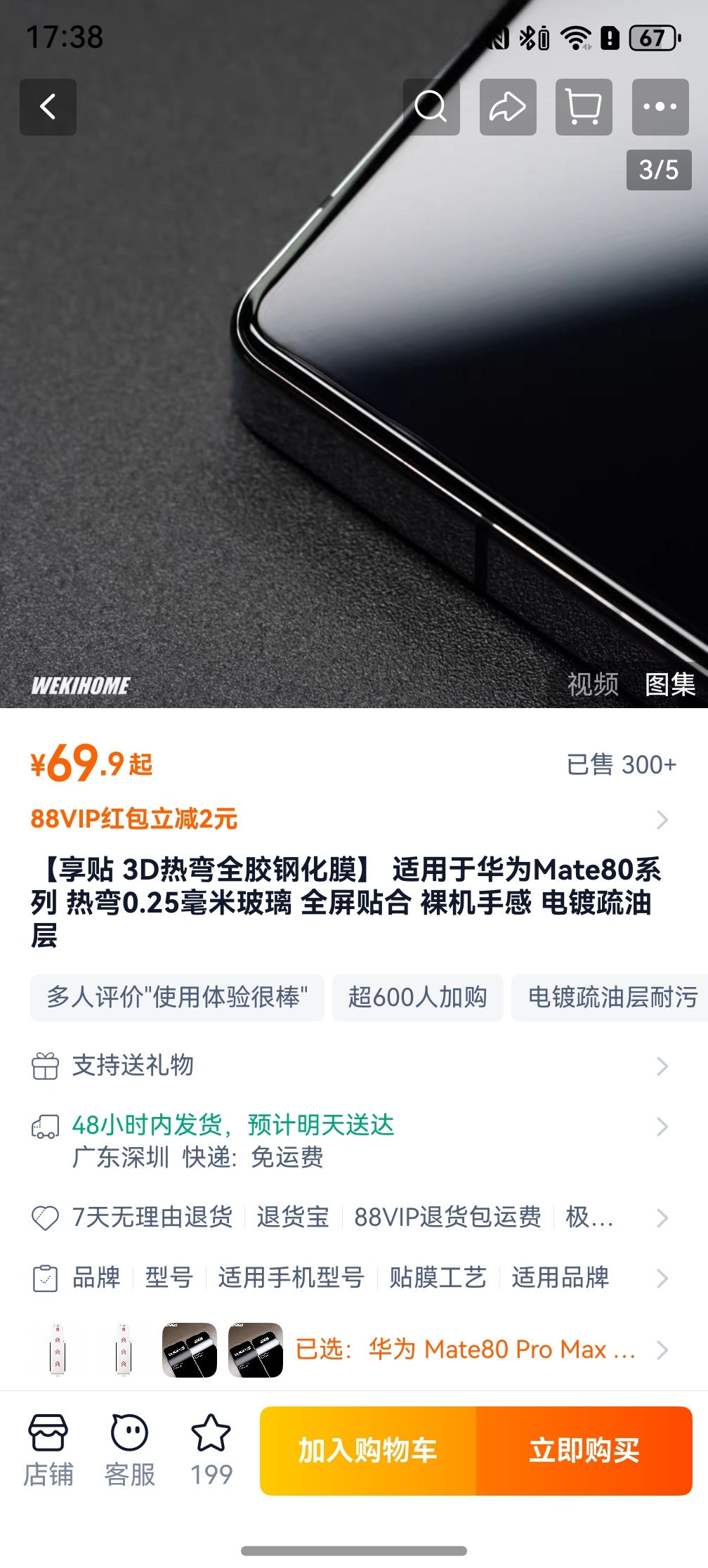 给我的iQOO 15 Ultra在淘宝的一家叫「微机分」的店铺买了两张AR钢化膜,是真的好用啊。一体非挖孔,AR抗放射的能力也很强,价格也还不错,最主要贴上后真的是严丝合缝,边缘还是曲面带弧度的,手感真的好。爱了。不说了,我还得去他们家买两张一加15T和华为Mate 80 Pro Max的AR钢化膜。