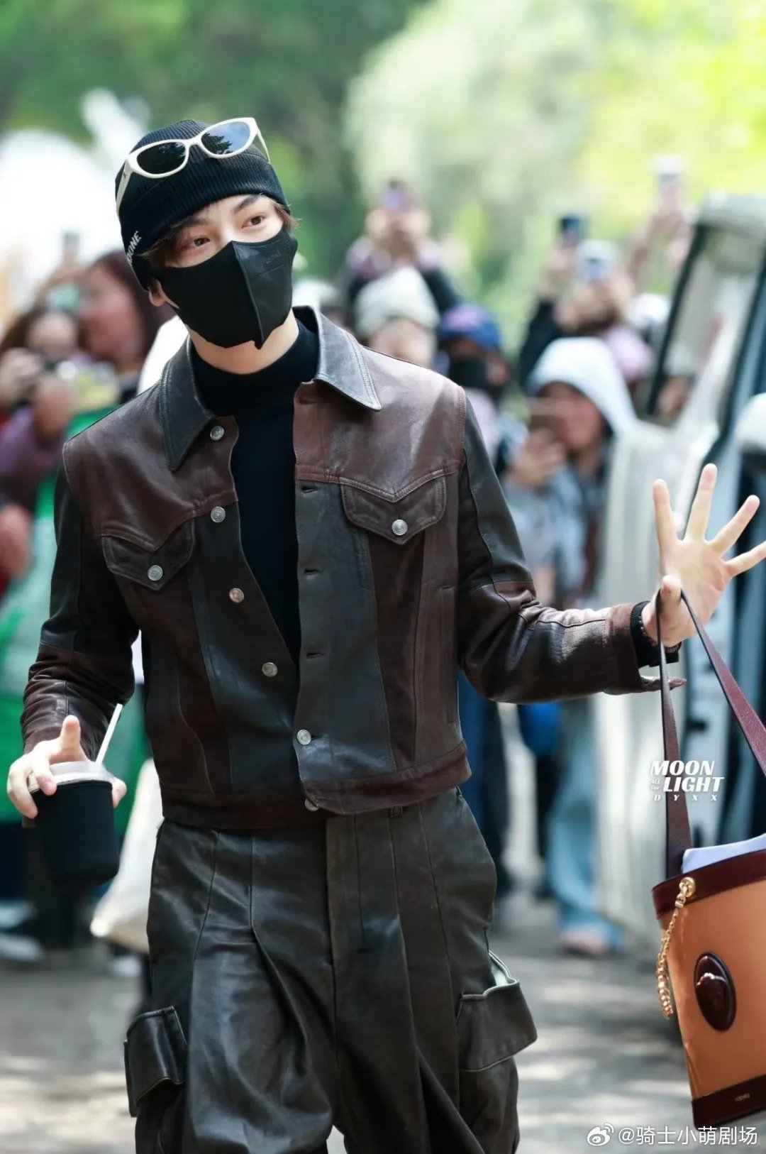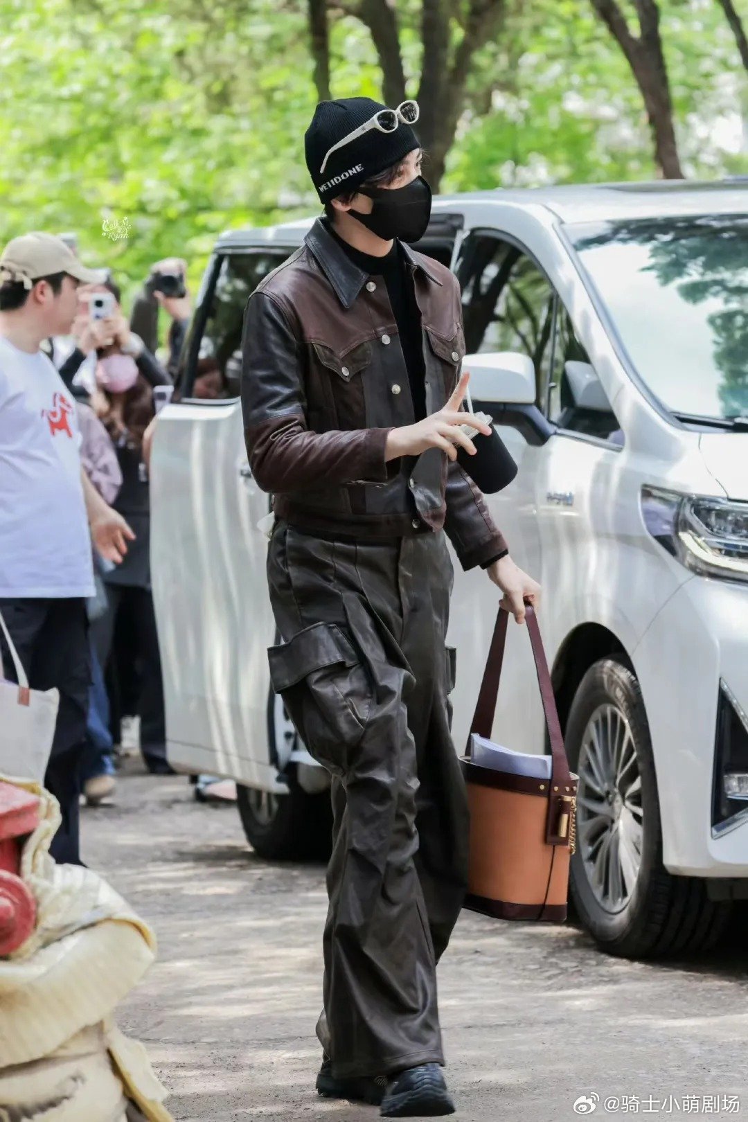 片场就是丁禹兮的秀场丁禹兮把片场走成秀场一身酷感皮装搭配针织帽,步伐利落有型,上