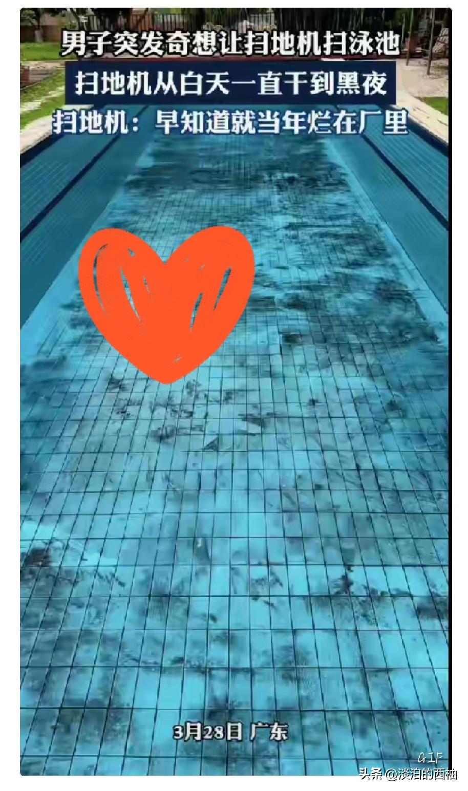 太有智慧了!广东,一男子想游泳,却发现闲置的泳池底全是黑泥,自己刷太累,找专业清洁团队一问要几百块,实在觉得不划算,索性琢磨起了省钱省力的法子。 他瞅着家里的扫地机突然灵光一闪,这机子能自动扫地还能回充自清洁,放泳池里说不定也能用。说干就干,他先把泳池水放干,直接把扫地机和基站都摆了进去。 没想到这招真管用!扫地机从白天忙到天黑,在池底来回折返清扫,全程不用人盯,没电了自己回充,最后愣是把脏兮兮的池底扫得锃亮,一分钱没花就把难题解决了。 网友说:这波操作太秀了,主打一个物尽其用,扫地机连夜跨界打工,打工人DNA狠狠动了! 不得不说,生活里的小智慧真的太实用了,有时候换个思路,就能省下不少钱和功夫,还能解锁物品新用法。 你生活中有没有试过这种脑洞大开的省钱小妙招?