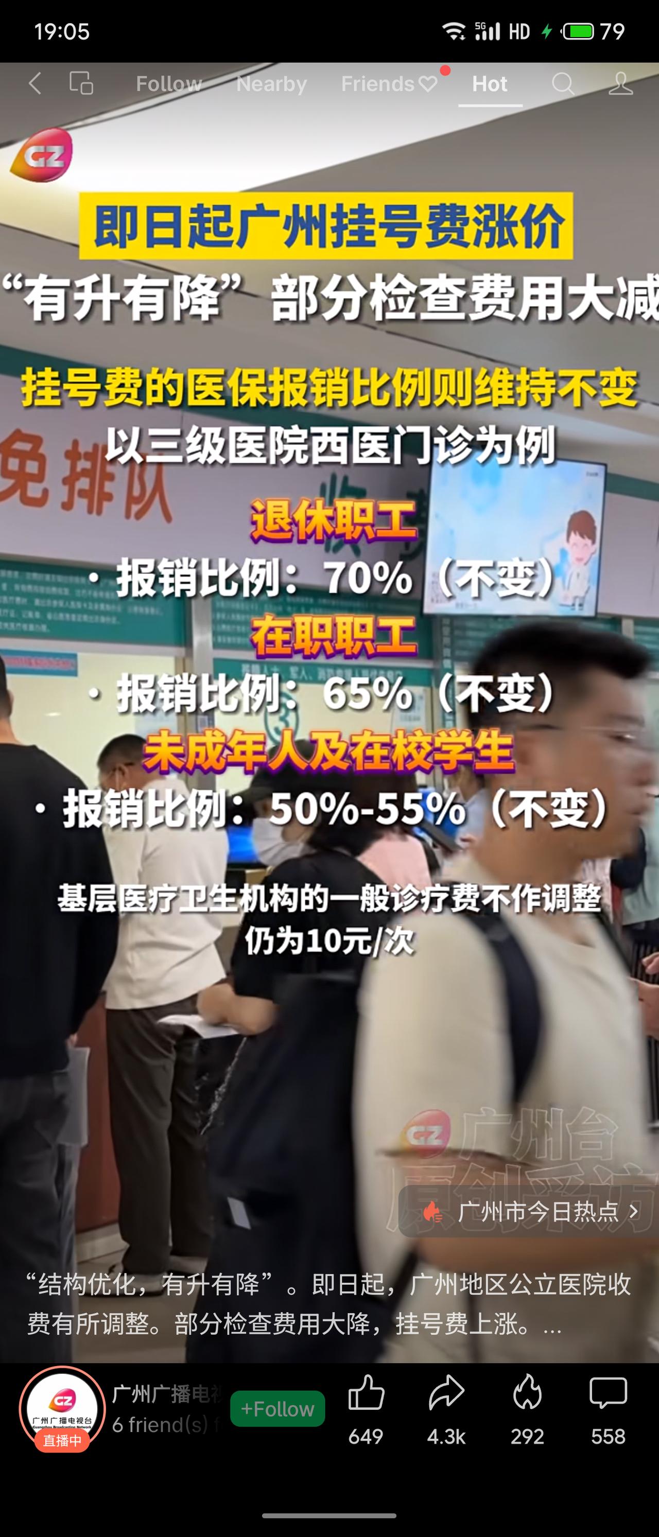 广州公立医院3月30日起调整医疗服务价格:挂号费上涨(如三级医院从13元涨至25元起),部分检查费用大幅下降(如肿瘤筛查975元降至100元),医保报销比例不变。网友评论:有升有降看似公平,但挂号惠及所有人,检查仅少数人受益。
