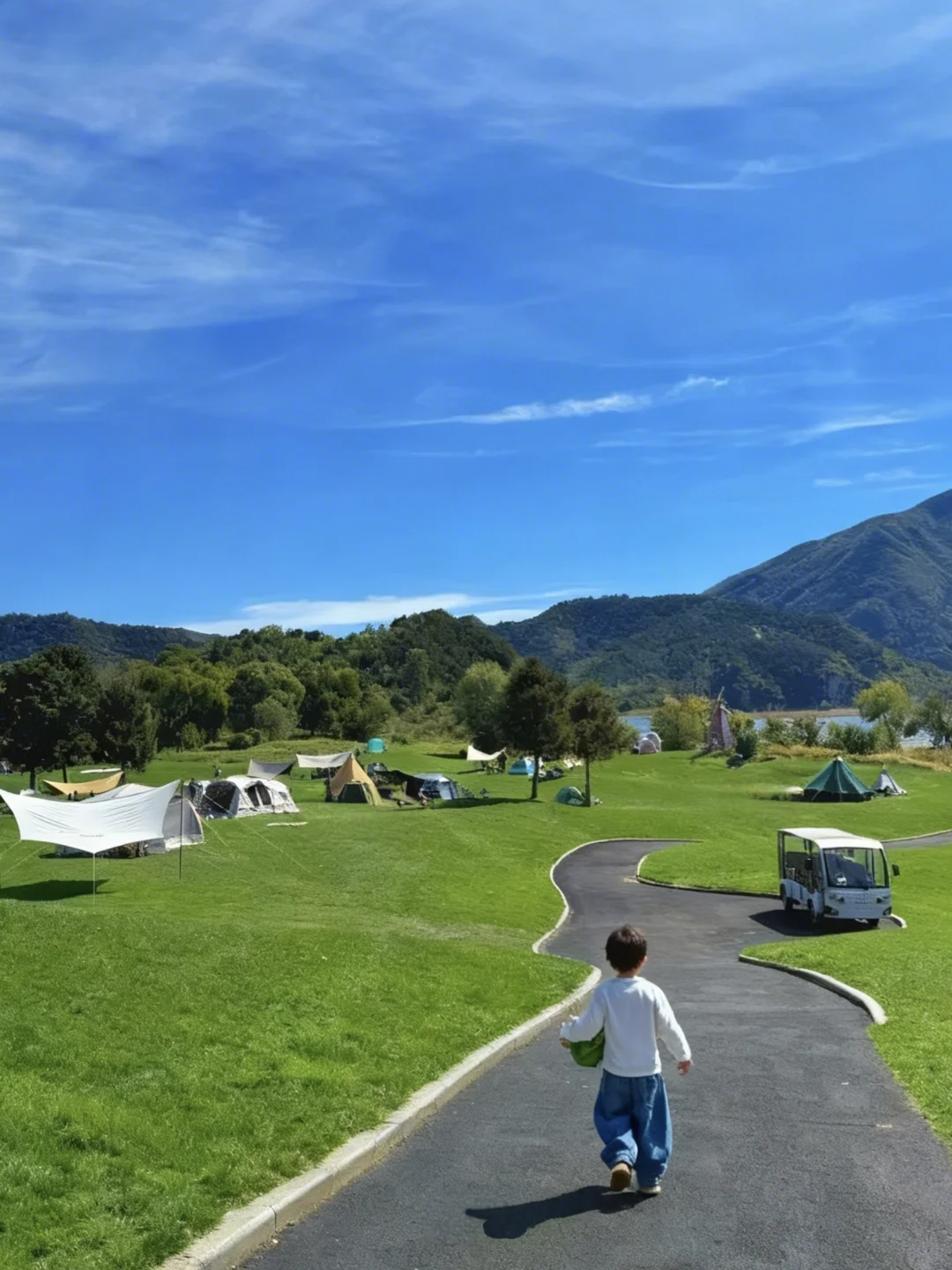 北京🚗2h左右 可达京郊“小瑞士”--平谷金海湖碧波岛,超美超出片,带娃体验下建议住一晚,两天一晚刚刚好,坐游艇好玩又出片,还有网红长颈鹿、儿童乐园,玩滑梯、挖沙子,绿色超大草坪,孩子可以自由奔跑,家长可搭帐篷野餐,孩子能在湖边亲水、观察自然,彻底释放天性,远离喧嚣,美丽的自然真的可以治愈一切,松弛感拉满,推荐机位:游湖项目、微澜山谷、壹号酒店&旁边露营区、无边泳池、山顶咖啡、霍比特小屋