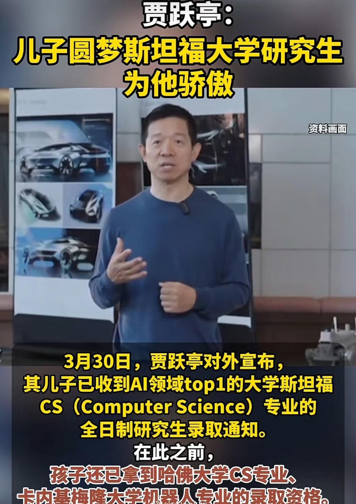 贾跃亭乐开花,儿子考上斯坦福大学的研究生了。 还得有钱才能上。
