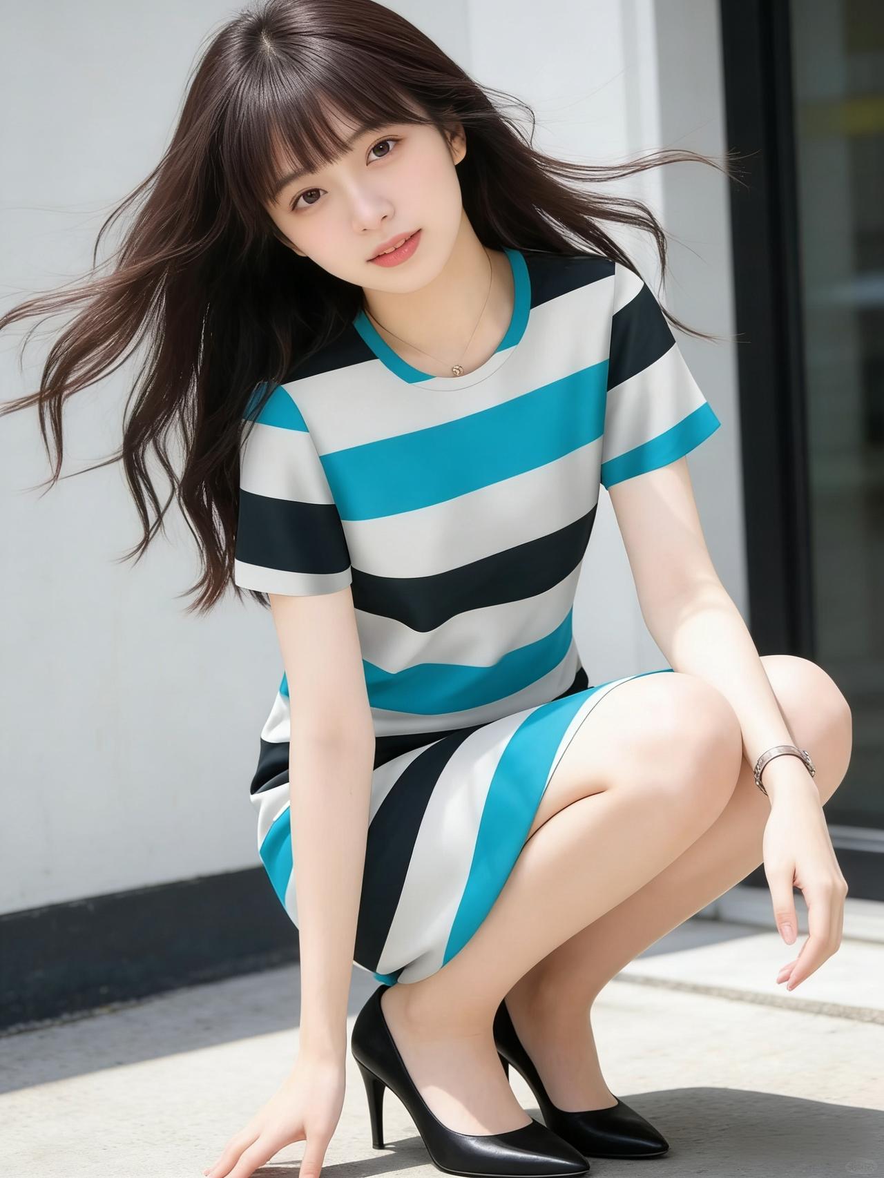 蓝白黑条纹连衣裙,清新如海风,条纹元素带来活泼律动感。搭配黑色高跟鞋,瞬间提升气质,拉长腿部线条。黑白蓝的经典组合,简约中透着时尚,元气满满又不失优雅。阳光下旋转,裙摆飞扬,每一步都散发着青春活力,轻松打造夏日清爽造型,展现迷人风采。🌞👗👠职场穿搭怎样更显女人味? 职场女性穿什么裙子好看? 什么样的高跟鞋适合女人在家里穿呢 职场通勤穿搭你喜欢怎么样的?