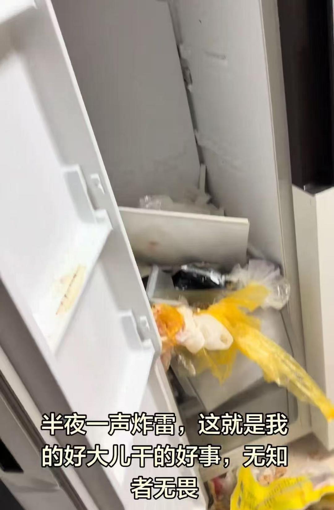 “笑不活了”浙江,一位妈妈半夜熟睡中,突然听到厨房传来一声巨响,结果跑过去一看瞬间血压拉满! 谁能想到,一台价值1万2的豪华双开门冰箱,竟然在凌晨被亲儿子给“炸”得粉碎。 但这不仅是一场因为好奇心引发的家庭惨剧,背后更是暴露了一个极具杀伤力、却被无数家庭忽略的致命隐患。 事情发生在浙江兰溪,主角是个刚上初二、今年才14岁的小伙子。 这孩子平时不爱在外面惹是生非,偏偏对理科那些烧脑的科学实验有一种近乎痴迷的热爱。 事发当天,他偷偷弄来了一批实验用的干冰,自己在家里鼓捣那些令人眼花缭乱的科学现象。 等实验全做完了,还剩下一大块干冰没用完,这小伙子觉得扔了太可惜。 一来二去,他找来一个塑料瓶,把剩下的干冰一股脑全塞了进去,死死拧紧了瓶盖。 紧接着,他顺手就把这颗“自制炸弹”,塞进了自家那台价值12000元大冰箱的冷冻室里。 突然,“轰”的一声巨响撕裂了黑夜的宁静,犹如平地起惊雷,连房梁上的积灰都被震得扑簌簌往下掉! 大家惊魂未定地冲进厨房,瞬间被眼前的惨状钉在了原地,心里顿时五味杂陈。 墙根那台1万多块钱的制冷巨无霸,直接被彻底拆解成了报废的“破铜烂铁”。 厚实的冰箱铁皮被恐怖的冲击波生生掀飞,内部散落的零件崩得到处都是。 满地狼藉犹如海啸过境,这哪里是日常起居的厨房,简直就是刚刚结束交火的爆破现场。 要知道,当时要是有人正好进厨房喝水,这迎面飞来带有锋利边缘的碎铁皮绝对能要了人命。 万幸的是,当时正值午夜,全家人都待在卧室里,这才侥幸躲过了一场家破人亡的血光之灾。 说到这里,肯定有人要问,区区一块不起眼的干冰,怎么会有炸药一般的惊人威力? 这正是最让人后怕的地方,干冰压根不是水结成的普通冰块,而是纯粹的固态二氧化碳。 即便是在冰箱冷冻室零下18度的低温环境里,干冰依然在不知疲倦地疯狂升华。 它从固态直接向气态转化时,其体积会在眨眼间暴涨整整600到800倍! 那只被死死拧住瓶盖的塑料瓶,彻底斩断了内部高浓度气体的泄压通道。 当内部压力急剧飙升,突破了塑料材质和冰箱内胆的物理承受极限,这就等同于引爆了一枚高强度气体弹! 而且不仅是做实验,现在的生鲜电商和快递行业,早就把干冰玩出了花。 你平时网购的深海大龙虾、高档冰淇淋包裹里,随处可见这种用于超低温保鲜的干冰包。 不知有多少人,拆完快递就把干冰连同食物随手塞进冰箱,甚至放在玻璃密封罐里。 这种下意识的常规操作,摆明了就是把一根随时会引爆的导火索攥在了自己手里! 话说回来,如果遇到这档子破财的倒霉事,绝大多数家长恐怕早就抄起拖鞋,把败家的儿子揍得满地找牙了。 但这位14岁少年的妈妈纪女士,她的后续做法简直是四两拨千斤,让人佩服得直拍大腿。 面对一万多块钱当场打水漂的惨剧,她硬生生压住了心头的怒火,全程没有爆发半句打骂。 第二天一早,纪女士直接把吓得六神无主的儿子叫到了那一堆废铁面前。 她没有控诉这台冰箱有多贵,而是以这片废墟为黑板,给儿子上了一堂极其硬核的现场物理课。 她把干冰升华膨胀的底层原理、密闭空间的压强几何级增长公式,一五一十地掰碎了揉烂了讲给孩子听。 更是绝了的是,她还借机特别科普了在日常生活中正确处理干冰的救命准则。 比如干冰必须放置在通风良好的开放空间让其自然挥发,绝不能在任何密闭容器内死水存放。 更不能用赤手直接去触摸这零下78.5度的工业品,否则瞬间就会导致神经坏死级别的严重冻伤。 一万二买一个冰箱,就这么无缘无故听了个响,作为普通家庭当然心疼得滴血。 但这笔巨款却换来了一堂让孩子刻骨铭心、未来能保命护体的安全课,你品,你细品,这到底值不值? 用简单粗暴的棍棒去浇灭一个14岁少年的求知欲和探索心,那才是最无知、最可怕的教育事故。 冰箱报废了只要卡里有余额随时能换新的,但孩子探索未知世界的火种一旦被吓灭,你砸一百万都点不燃。 这位妈妈硬气的止损智慧和清醒的大局观,不仅稳稳接住了少年惊慌失措的自尊,更是给千千万万中国家庭上了一堂教科书级别的认知启蒙课!