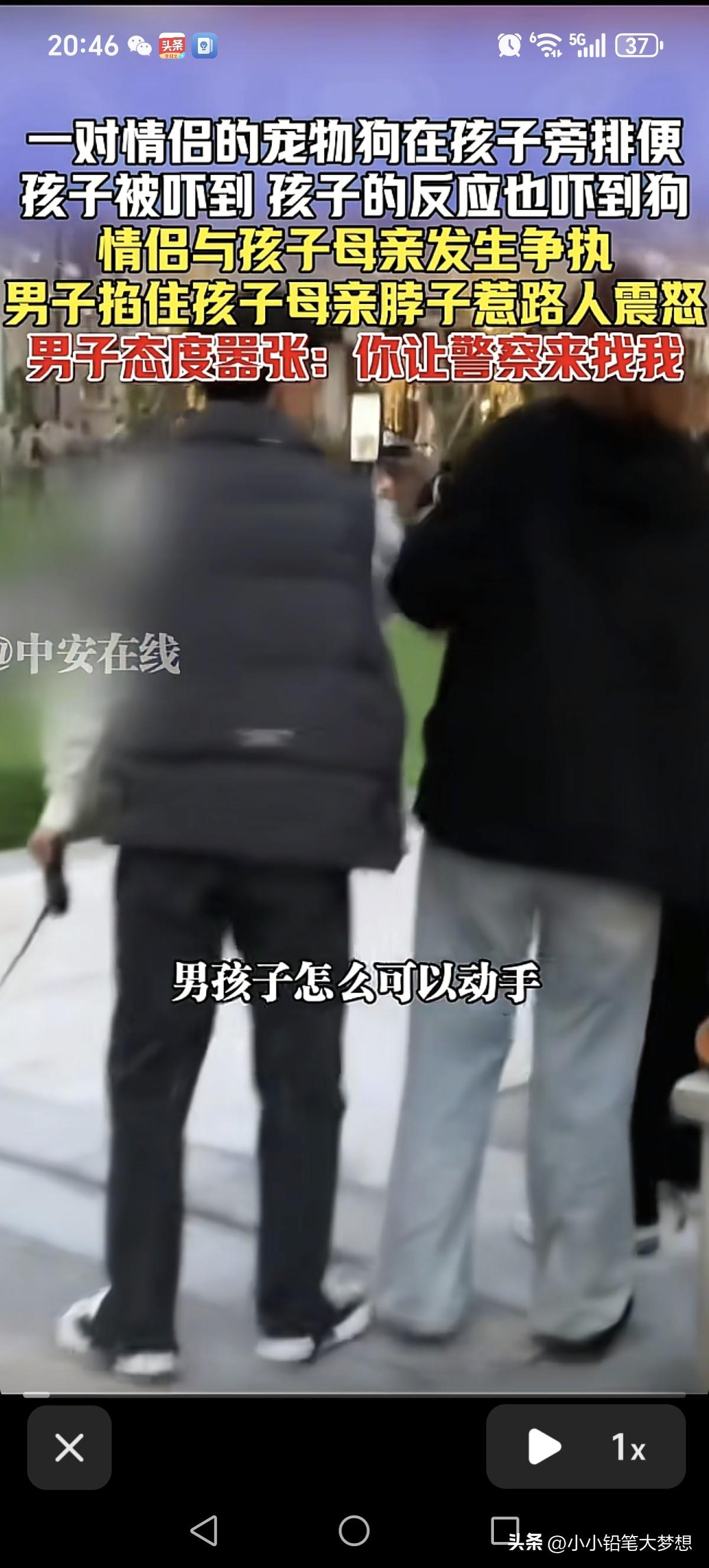 “我的狗也是我孩子啊,不是你孩子你,也是命啊!”3月29号,上海一宠物狗在公共场所拉屎,吓到了旁边的孩子,孩子受惊吓的反应又吓到了狗。 新闻中说是一对情侣,但实际上两个都是女的,首先头发长一点的女子为自己的狗抱不平,说小孩吓到他们家的狗了,双方就起了争执。 头发长一点的女还设身处地的举例子责骂小孩的不对:“你小孩在旁边拉屎,你的同学上来吓他一跳。。。” 孩子的母亲打断她的话回怼:“我的小孩不会在这里拉屎,这是公共的地方,不是你们想拉就拉的,我的小孩不能从这走过吗?” 这个时候头发长一点的女狗主听了这话就崩溃大喊:“我的狗也是我孩子啊,不是你孩子你,也是命啊!” 后来男狗主直接上帮腔:“你他妈的,我上来就给你一个耳光,我这脾气!” 孩子的妈妈不甘示弱的回怼:“这不是你私人的空间,这是大马路,这叫打扰吗?” 双方一开始都是语言争执,后来男狗主直接上前掐住了孩子的妈妈的脖子,态度十分嚣张! 这个行为让旁人看见了十分愤怒,纷纷上来指着男子的行为:“男孩子”你怎么可以动手啊,可短发女人立马回怼“什么男孩子,关你屁事啊!” 后来这这对“情侣”拉着狗就想走,这位妈妈说已经报了警了,不要走! 是对“情侣”居然还说:“你报啊,怕你啊!你自己不讲道理,还跟我们讲道理!” 孩子的妈妈回怼:“你动手打人了!” 这个短发的狗主说“我是女孩子,我不是男孩子,你在外面碰到脾气差的门牙都给你打掉!” 后来旁边的路人也看不过眼了直接就跟这个短发的狗主理论,但是这个短发的狗主一直狡辩,听不下去,觉得就是小孩子吓到他的狗了! 这短发的狗主拉只狗就想走直接跟这个妈妈说:“警察过来,去店里找我! 头发稍长的那个女狗主又上前跟这位妈妈理论:“你小孩就是有问题,你的教育方式也是有问题,我们家的狗。。。” 妈妈听不下去了直接说你不要转移话题! 头发稍长的女孩就开始发飙了,一直问候对方的妈妈,还叫嚣叫警察来抓我,跟你讲话讲不通是吧? 双方就开始对骂,各自问候对方的妈妈,那场面真激烈! 这个时候短发的狗主就上来对这位妈妈说:“不要骂她! 这位妈妈非常激动地说:“她为什么就能骂我?” 那个头发长的女孩就说:“我有病,我发病了,我有权找你,你有本事就来找我,我就是个神,经病!!” 后来这两个人想走了,但是发现旁边有个人拍他们,直接上前先把iPad抢掉! 哎,真的一言难尽,这些爱狗人士是不是爱得有点变态?人和畜都分不清了吗?小孩没有狗命重要了?