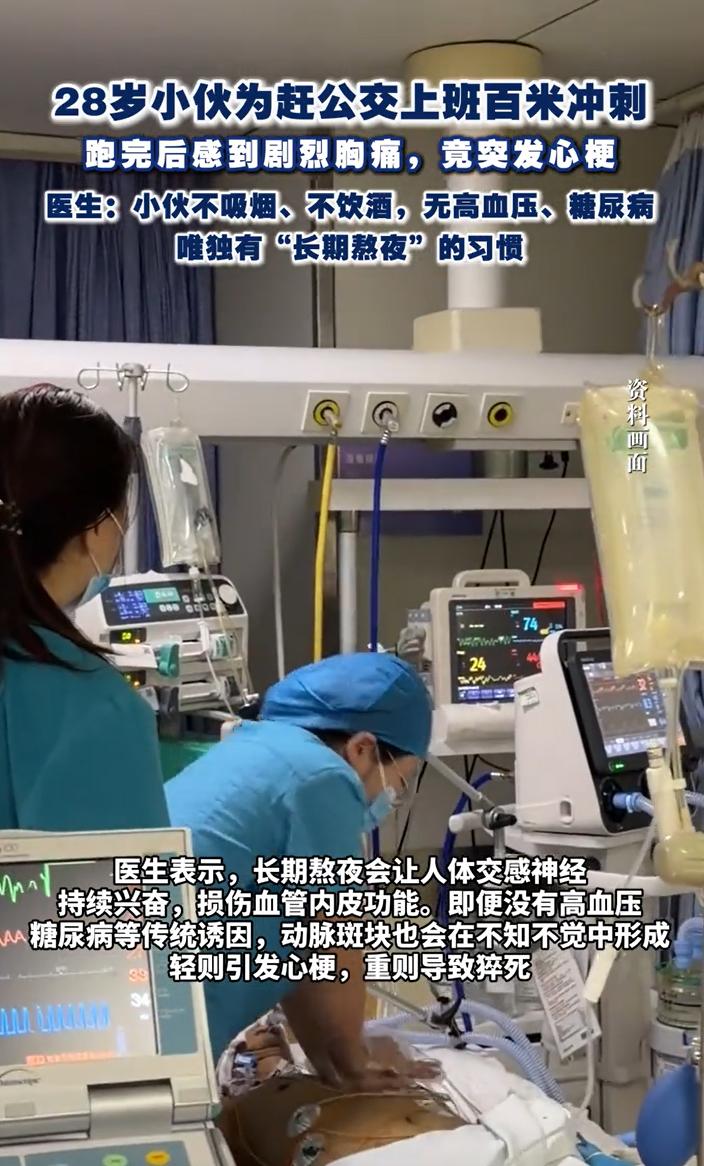 湖南长沙,一28岁小伙为了赶公交,拼了命地冲刺了一两百米。不料,车是赶上了,小伙大口喘着气靠在栏杆上,还没来得及庆幸赶上这班车,胸口突然像被铁钳死死夹住,疼得他眼前发黑。意识模糊前,他用最后力气拨通了120。急救车上,心电图拉出“广泛前壁心肌梗死”的警报。医院来不及等家属、来不及收费,直接把人推进手术室,发现心脏最重要的血管“前降支”已经完全堵死。   28岁的孙明(化名)猛地从床上弹起,看了眼手机,瞳孔瞬间放大,要迟到了。   这已经是他多次在迟到边缘挣扎,作为一名互联网公司的程序员,孙明的生活早已和“熬夜”深度绑定。   昨晚,他又为了一个项目上线,盯着屏幕到凌晨三点。   一大早,他胡乱套上外套,抓起门口的公文包,像一颗出膛的子弹冲下楼。   小区门口的公交站,他要等的那趟车正亮着转向灯,准备驶离。   在这一刻,孙明爆发出惊人的速度,冲刺了一两百米,终于在车门关闭前的一刹那,拍响了车门。   “谢谢师傅!”他喘着粗气,胸口像被一只无形的手攥住。   他扶着栏杆投了币,想找个座位,却发现早高峰的车厢里连个站脚的地方都挤。   他只好靠在门边,任由汗水浸透后背。   然而,那只“无形的手”并没有松开,反而越收越紧。   一阵剧烈的、压榨性的胸痛,像一把烧红的铁锥,从前胸直穿后背。   他感到一阵前所未有的眩晕,开始旋转,嘈杂的车厢声逐渐远去。   一个念头像闪电一样划过他逐渐模糊的意识:“不对,这不是简单的累。”   凭借最后一丝清醒,他用发抖的手掏出手机,按下三个数字:“120……我在公交车上,我胸痛,快不行了……”他断断续续报出了大概位置和车牌号。   电话那头,调度员冷静而专业的指令让他勉强保持着一线清明。   公交车司机也发现了异常,靠边停车,乘客们纷纷让开,有人递水,有人帮忙联系家属,但孙明已经无力回应。   很快,急救人员几乎是破门而入,迅速将他抬上救护车。   心电图机的线条在屏幕上剧烈跳动,随即又拉出一条让所有医护人员心都提到嗓子眼的曲线,广泛前壁心肌梗死。   急诊中心里,气氛骤然凝固,心梗对任何医生来说都意味着与死神的赛跑。   更凶险的是,孙明在急诊床上出现了一过性意识障碍,他整个人突然“断片”了几秒。   这是心脏泵血功能急剧衰竭的信号,是心脏骤停前最骇人的预警。   此时,一个更现实的问题摆在面前,孙明孤身一人,没有家属陪同,身上可能也没带足够的钱。   但在这里,医院没有丝毫犹豫,立刻启动急救绿色通道,选择先救人。   手术室里,医生凭借精湛的技术,在闭塞处精准注入溶栓药物,然后像铺设一条微型隧道一样,将一枚小小的支架稳稳地植入,撑开了堵塞的血管。   手术很成功,孙明从鬼门关被硬生生拽了回来。   目前,孙明仍在治疗中。   有网友直言感同身受,这不就是我吗?每天加班到凌晨,第二天还要早起赶公交。看完这条新闻,我摸着胸口问自己,我现在拼命挣的钱,将来够不够交一次心梗的手术费?真等到进医院那一刻,公司会管我吗?   也有网友说,这种事最怕的就是‘“啥也赔不了”。在上班路上发病不算工伤,证明是加班导致心梗又难于上青天。最后医疗费自己扛,工作可能还保不住。   从法律角度,孙明在上班途中、为赶乘公交车而突发心肌梗死,如造成损伤,该情形是否属于工伤或视同工伤?   《工伤保险条例》第十四条规定:职工有下列情形之一的,应当认定为工伤:……(六)在上下班途中,受到非本人主要责任的交通事故或者城市轨道交通、客运轮渡、火车事故伤害的;……   第十五条规定:“职工有下列情形之一的,视同工伤:(一)在工作时间和工作岗位,突发疾病死亡或者在48小时之内经抢救无效死亡的;……   本案中,孙明突发疾病的时间为早上上班途中,地点为公交车上或车站附近,符合“上下班途中”的时间与空间要素。   然而,要认定为工伤,要求孙明受到的伤害系非本人主要责任的交通事故等伤害。   本案中,孙明系因自身身体原因突发心肌梗死,其“伤害”来源是自身疾病,而非任何外力交通事故。   所以,孙明的情形与法定工伤情形不符。   此外,本案中,孙先生是在上班途中发病,其尚未到达工作场所,未进入“工作时间”和“工作岗位”。   司法实践中,对于“工作时间”和“工作岗位”的解释通常不延伸至通勤途中,除非职工是在因工外出或从事与工作有关的预备性工作途中。   单纯的上班通勤,一般不被认定为在工作岗位。   即使孙明是在工作时间和工作岗位突发疾病,也要求“死亡或者在48小时之内经抢救无效死亡”的严重后果。   具体到本案,孙先生经医院及时抢救,目前生命体征平稳,正在康复中,未出现死亡或48小时内抢救无效死亡的法定后果。   因此,孙明的情况也不符合视同工伤的条件。   对此,你怎么看?
