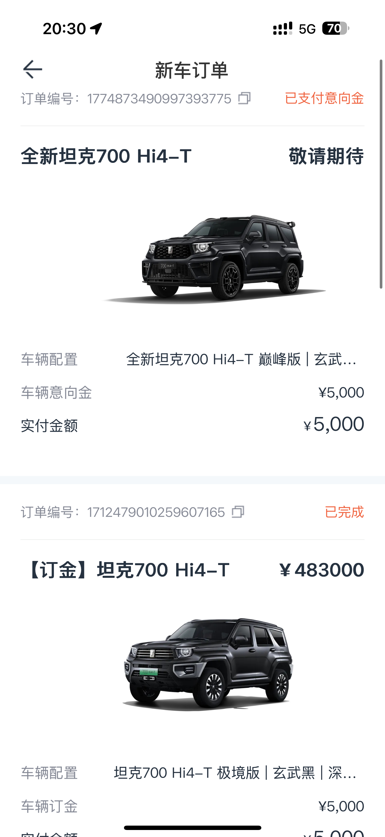 坦克2000升级坦克2700了呗 算了算,五台坦克一共消费210万 保定·长城汽