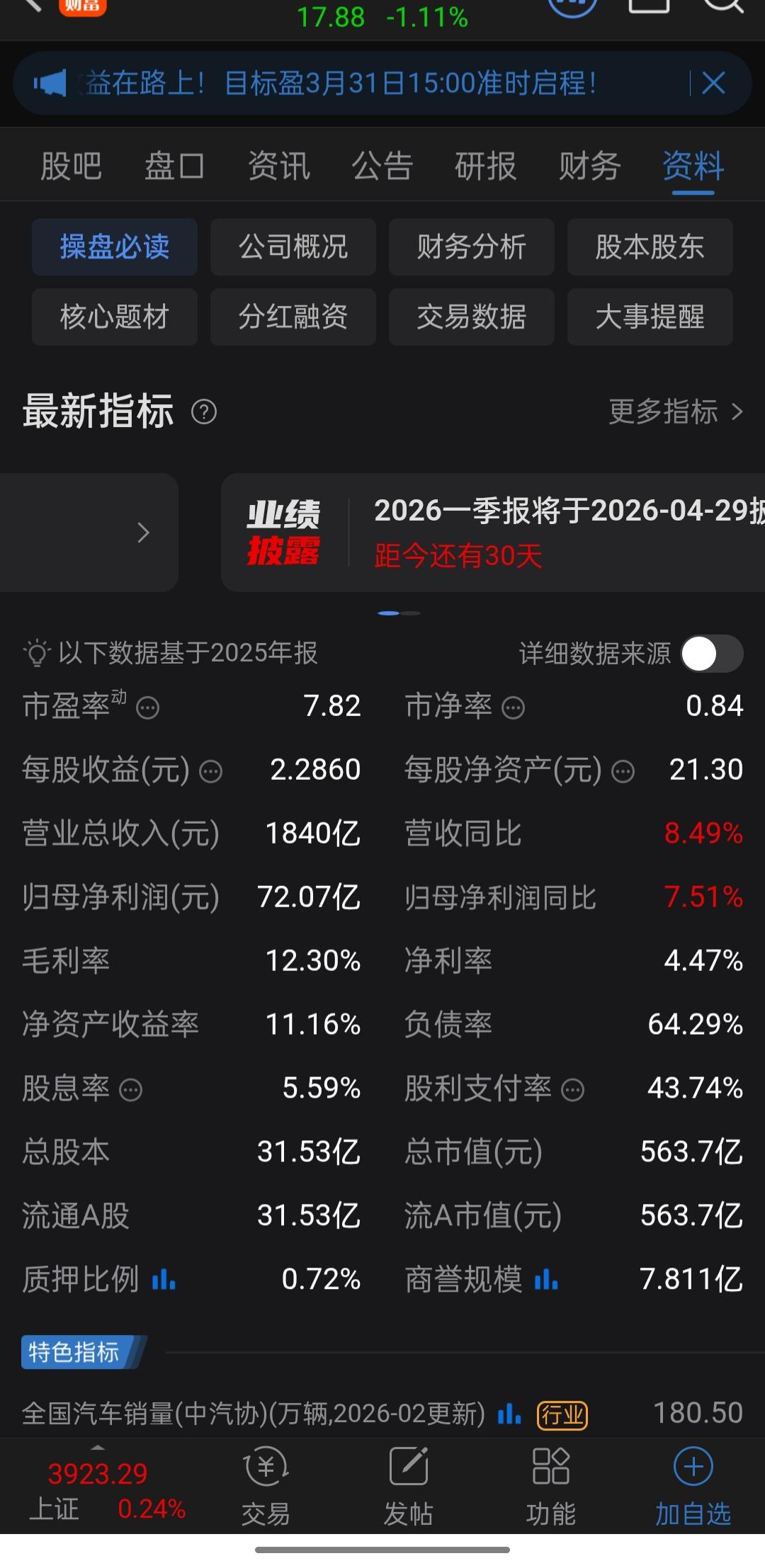 股价不到18块,每股净资产却超20元!这家汽车零部件巨头是“价值陷阱”还是“弯腰捡黄金”? 它现在的股价也就17块多钱,但你翻开它的家底一看——每股净资产高达20.53元!这还不算完,关键是它刚刚出了一份让人眼红的利润分配预案:每10股派发现金红利10元(含税)。没错,就是那种“你买一手,直接给你发100块现金”的豪横分红。 咱们先看几个硬邦邦的数据。现在公司的股价是17.88元,市净率(PB)只有0.87倍。这意味着什么?意味着这家公司的净资产在市场上正在打折甩卖,你花8毛7分钱,就能买到价值1块钱的资产。 再看它刚披露的2025年年报,那才叫一个“稳”字当头。全年营收1840亿元,归母净利润冲到了72.07亿元,同比稳稳增长了7.51%。更重要的是,它兜里是真有钱——经营活动产生的现金流量净额高达95.23亿元,同比增长超过15%。在现在这个“现金为王”的年代,这现金流就像定海神针一样。 当然,最让我这种喜欢算股息的人心动的,还是它的分红方案。公司直接拍板:每10股派发现金红利10元(含税),算下来每股就能分到1块钱。按现在的股价17.88元算,股息率超过5.5%!这年头,银行理财破2%,存款利率一降再降,这种能稳定吐出真金白银的公司,简直是“现金奶牛”啊。 可能有人会说,汽车零部件不就是传统制造业吗?能有啥想象空间? 其实不然。我翻了一下它的业务构成,它早就不只是做做内饰件那么简单了。这公司现在手里攥着三张牌:“智能座舱、智能底盘、智能动力”。这也是它年报里重点提到的转型方向。 你想啊,现在新能源车卷成这样,新势力们喊得震天响,但最终落到实处的,不还是这些零部件巨头提供的技术和产能吗?公司在智能座舱这块布局很深,同时在智能底盘和动力平台上也在砸钱投入。它2025年的研发费用超过65个亿,研发人员超过11000人,占公司总人数的20%以上。这种研发强度,说明人家不是躺在功劳簿上吃老本,而是在为下一场仗做准备。 股价为啥这么“憋屈”?数据这么亮眼,分红这么给力,股价咋就一直在17、18块钱晃悠,甚至还破净了呢? 市场其实也有它的顾虑。虽然2025年业绩稳住了,但汽车行业的价格战那是刺刀见红。公司作为上游供应商,难免会受到下游整车厂降价压力的传导。看看它的毛利率,虽然稳中有升,但也只有12.3%左右,说明赚钱确实不容易。 再者,它旗下也有不少合资业务,比如延锋内饰这些,虽然已经是全球老大,但面对行业“新四化”的快速迭代,大象转身毕竟需要时间。市场担心的是,这种传统的盈利模式,能不能支撑起更高的估值。 一家公司,股价17.88元,每股净资产20.53元,每股分红1块钱,经营性现金流充沛。说白了,这就相当于你花不到18块钱,买到了一个每年能给你返现1块钱的“理财”,而且这个理财背后还有一家年营收1800多亿、正在全力转型的行业巨头在给你打工。 现在的市场,要么追逐高风险高回报的概念股,要么就去拥抱这种跌到尘埃里、但手里全是硬家底的“烟蒂股”。 那么问题来了,在新能源车下半场智能化竞争越来越激烈的当下,像公司这样的传统零部件巨头,到底是那种账面资产无法兑现的“价值陷阱”,还是市场情绪错杀下、给了我们弯腰捡钻石的机会? 各位老铁,你们觉得这只“现金奶牛”现在能上车吗?欢迎在评论区留下你的看法,咱们一起唠唠!