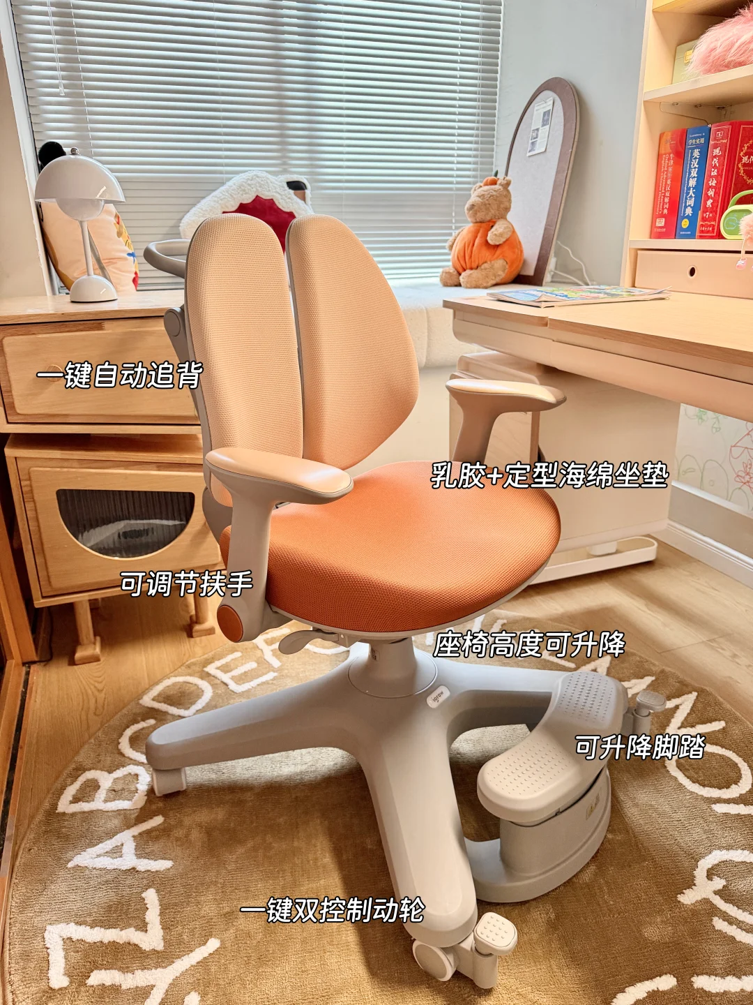 ⚫ 配套的星际椅座椅高度、椅背都可以根据娃的身高来调节,6岁用到16岁完全没问题,20cm一键追背设计还能自动贴合娃的脊椎,纠正坐姿这一块完全不用费妈了