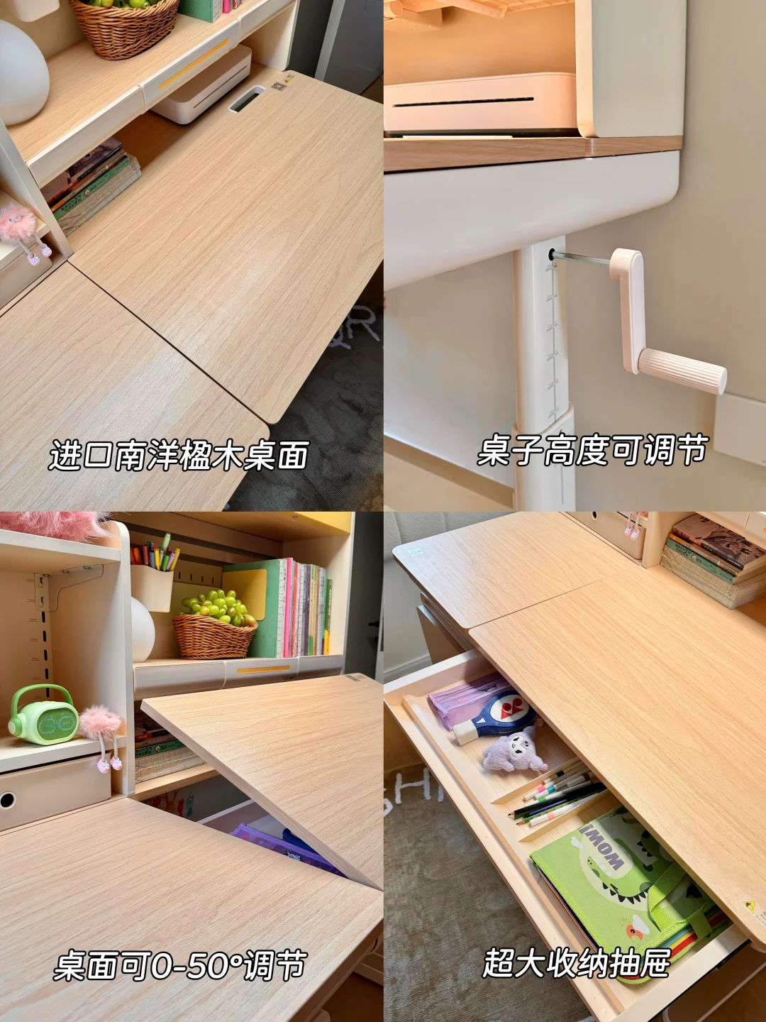 桌面能0-50度调节,娃写字还是画画都可以调整到合适的角度,不仅方便还能保持视距
