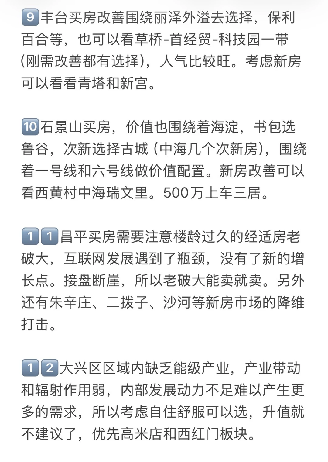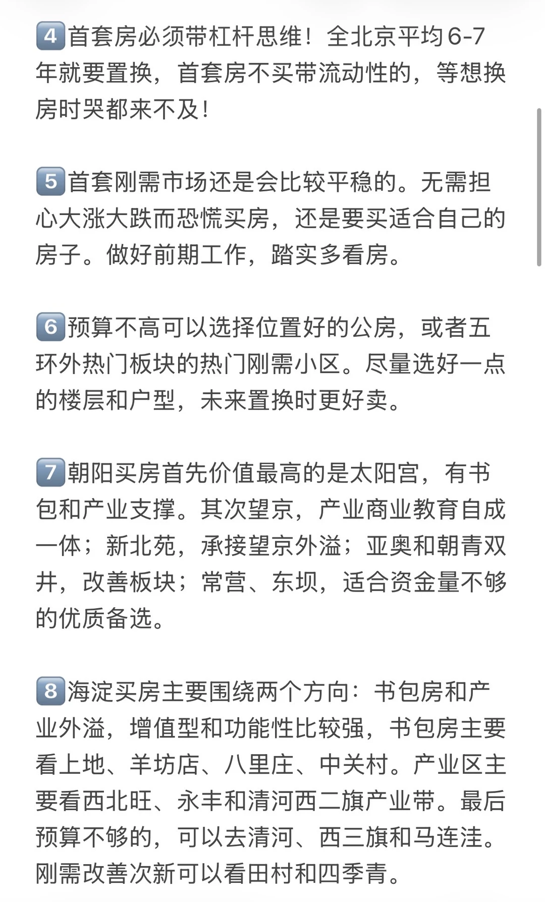 7️⃣朝阳买房首先价值最高的是太阳宫,有书包和产业支撑。其次望京,产业商业教育自成一体;新北苑,承接望京外溢;亚奥和朝青双井,改善板块;常营、东坝,适合资金量不够的优质备选。