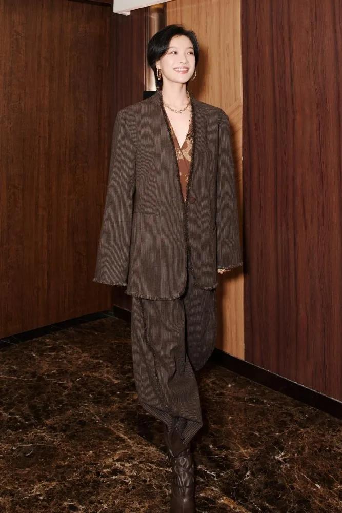 倪妮短发造型杀我! 倪妮这组新造型真的太绝了!💥 利落短发配棕色调西装套装,慵懒中透着飒爽,复古感拉满。 内搭印花衬衫点睛,金属配饰精致加分,妥妥的高级感松弛风! 短发的倪妮真的好有气场,状态满分!✨ 倪妮 倪妮短发 明星穿搭 高级感穿搭