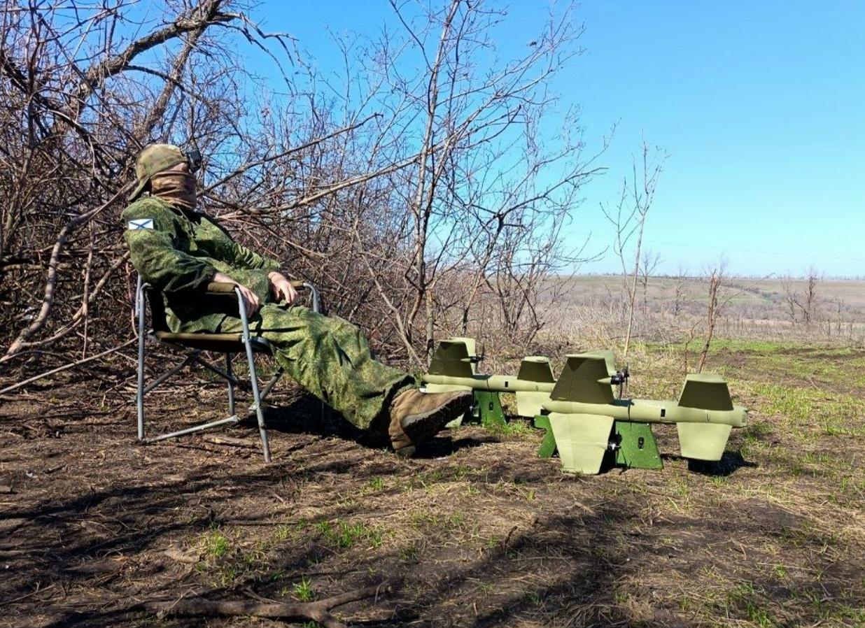 俄军海步的无人机操作员在战斗间隙中休息。 真惬意。实际上仍处于战斗值班中。