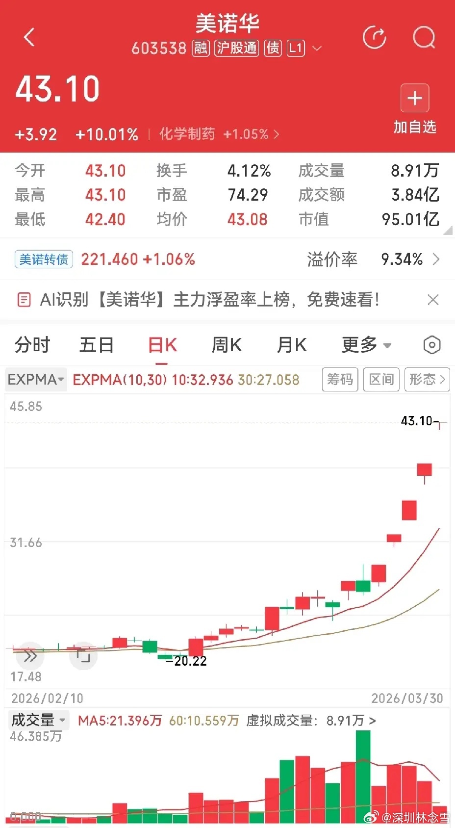 今日市场板块分化极致,轮动节奏格外鲜明。医药板块迎来强势回暖,美诺华四进五成功突破,打开板块高度,直接带动双鹭药业、津药药业、联环药业悉数晋级二连板,板块做多情绪被充分点燃,不过能否正式成为新主线,仍需后续盘面持续验证。