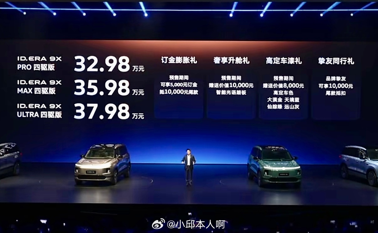 上汽大众ID.ERA 9X在2026年3月30日开始预售,价格在32.98万到37.98万之间,这款车属于大型增程式SUV。大众9X是增程车的终极答案吗