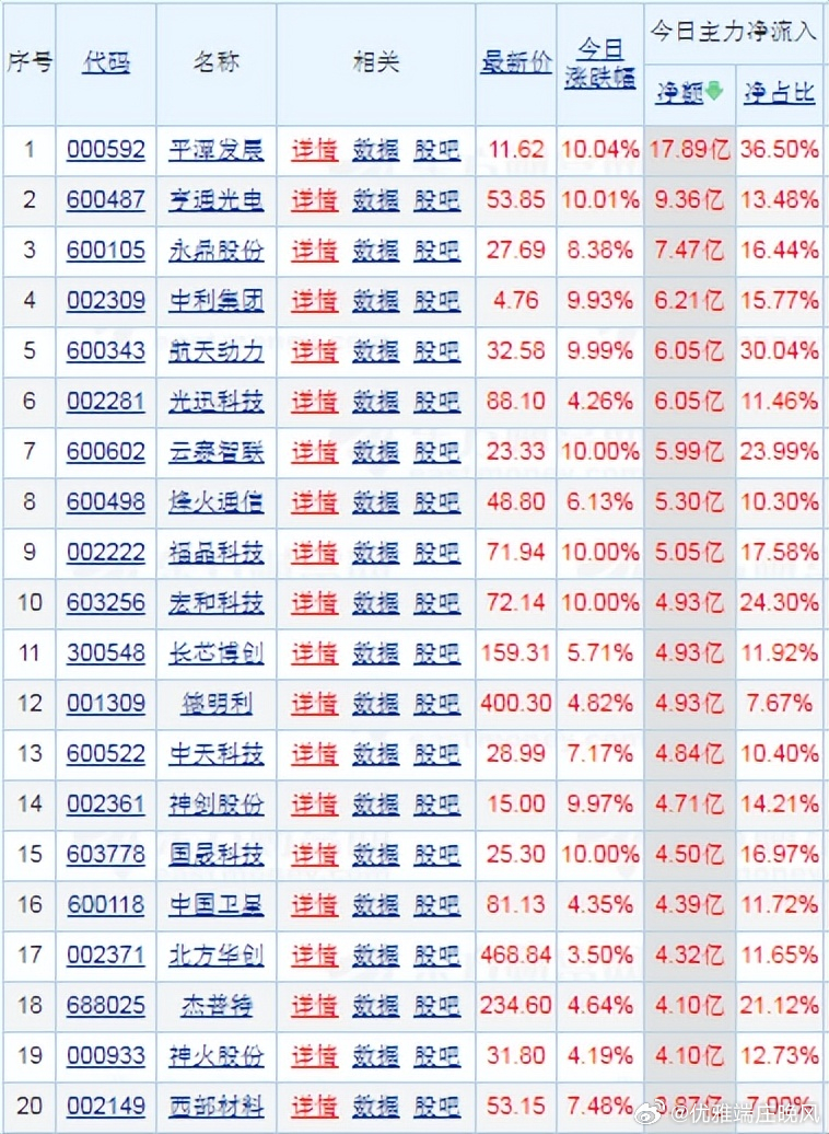 收盘价:25.30元。涨跌幅: 10.00%。净流入: 4.50亿