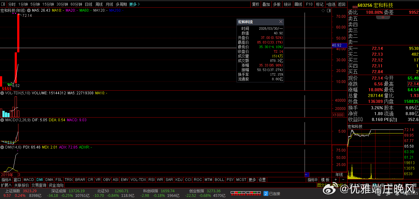 收盘价:71.94元。涨跌幅:10.00。净流入: % 5.05亿