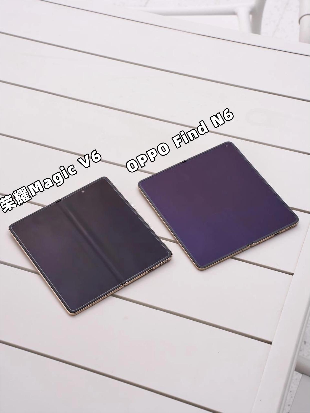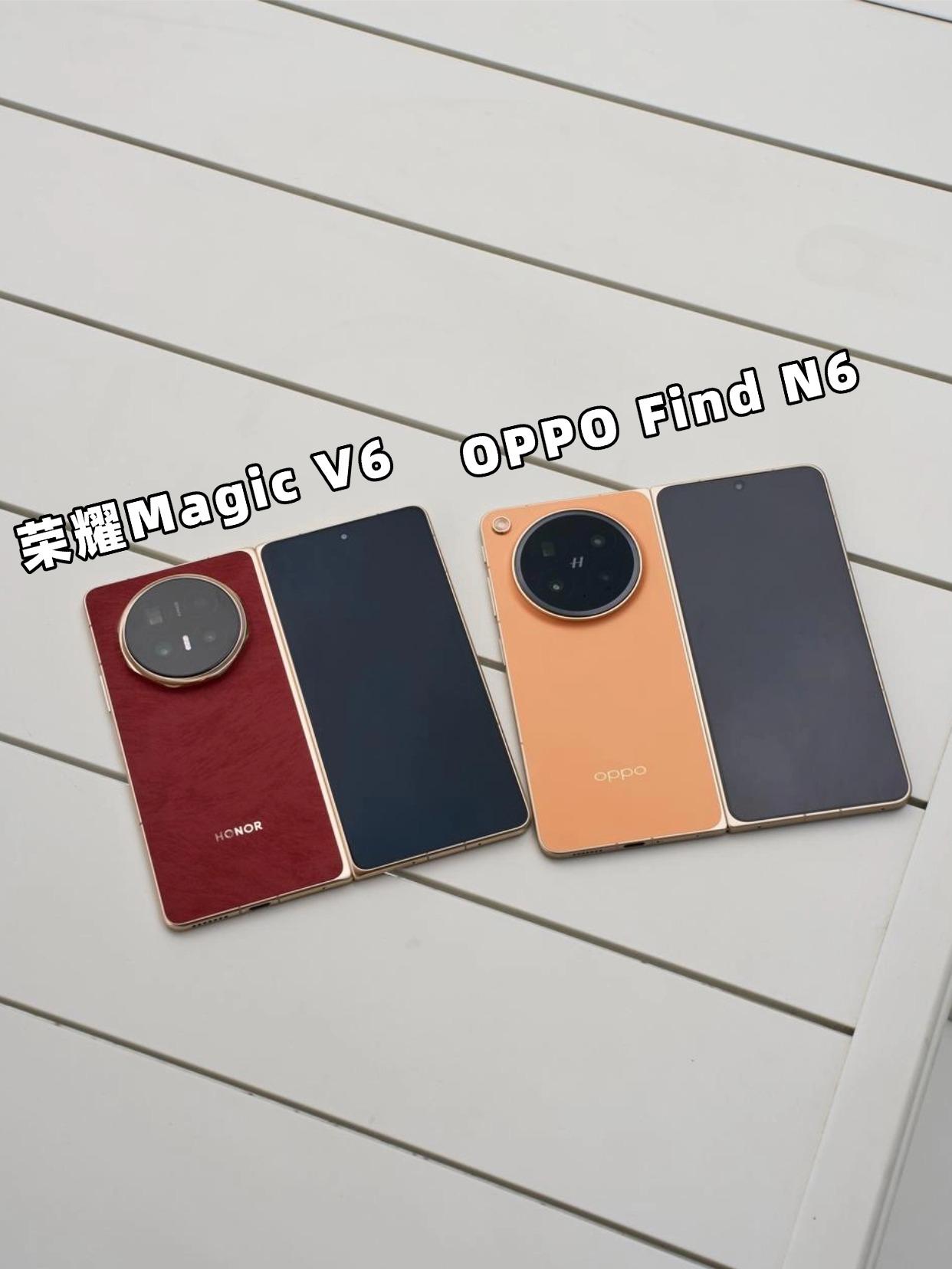 无需纠结,Find N6和Magic V6怎么选都不出错 想换折叠屏纠结了小半个月,荣耀Magic V6和OPPO Find N6之间来回横跳,两款都实际上手感受了一下,简单说说我的真实看法:选顶配都值,但适合的人真不一样。 先说荣耀Magic V6,这代V6做得确实很用心,圆润商务风,素皮拼接手感很舒服,拿在手里不笨重,系统稳定流畅,续航更是亮点,7150mAh青海湖电池,一天重度使用也不用频繁充电,还有IP68防水,日常通勤、出差用着特别省心。它就像那种“不出错”的优等生,该有的配置都有,没有明显短板,价格也相对友好! 至于OPPO Find N6,它和荣耀Magic V6的理念完全不同,如果你更看重折叠形态本身的体验,那Find N6绝对更戳你。它的折痕控制基本找不到对手,展开后几乎看不见折痕,摸上去也很平滑,看视频、办公不用担心会受打扰,8.12英寸超大内屏,搭配AI手写笔,大屏批注、创作都超爽,哈苏影像也很能打,随手拍都出片。 说实话,对比这么久,现在我有点偏向OPPO Find N6了,不是说荣耀 Magic V6 不好,而是我觉得买折叠屏,想要的就是“折叠”带来的沉浸感,不是一台“能折叠的直板机”。如果只看参数,直板机反而更划算,折叠屏的灵魂,就是近乎无痕的平整感和大屏体验。 再一个就是,现在整体大环境都在涨,折叠屏更是这样。 所以如果已经决定入手这类产品,其实我更建议一步到位上顶配,大内存用起来更安心,也更耐用。 OPPOFindN6 荣耀MagicV6 折叠屏推荐 1TB大内存 数码选购指南 我的私藏好物