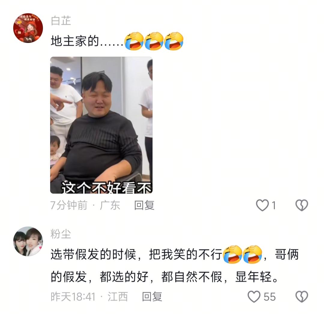 现在全网最社死的男人就是二胖了吧! 不是因为西安办事出糗,也不是因为光头被笑,而是因为试假发被老婆当众吐槽像日本汉奸! 救命!我真的要被二胖和玛丽这趟西安行笑到捶床!本来以为就是普通的出门办事,结果硬生生整出了“五十进去十八出来”的换老公名场面,我和小伙伴都惊呆了,越看越上头! 说实话,本来以为二胖就是陪家人随便溜达,结果后来发现,人家早就盯上大胖的假发了!说真的,谁看了身边人戴完假发直接年轻十几岁不心动啊? 之前我有个发小,秃头五六年死活不肯试假发,说怕被人笑,结果第一次试完,连亲妈都没第一时间认出来,真的绝了!嗯啊,二胖也是,看着哥哥的效果,麻溜就拉着老婆孩子冲店了。 不是吧?第一套中分假发刚戴上,玛丽直接笑到直不起腰,张口就说“太像日本汉奸了,太难看了”!我晕,这吐槽是一点不给老公留面子啊?两个女儿也头摇得像拨浪鼓,跟着说不好看。 本来二胖还挺有信心的,结果被老婆孩子一顿否定,连着试了好几款都不对,换我都要郁闷了。他本来想随便选一款算了,结果两个女儿非要帮他挑,硬是又试了三四套。 好不容易挑到合适的款,经理发师现场修剪调整,直接从油腻大叔变九零后小伙!雷波都打趣说“年轻了40岁,像十八的”,玛丽都忍不住伸手摸,直呼太棒了!之前听别人说,相由心生,你自己觉得自己年轻,状态就真的会不一样,这话真的没毛病。 总之啊,我想说的是,别被年龄或者别人的眼光绑住,想尝试啥新鲜东西就麻溜去试,说不定就有意外惊喜呢?把自己的小日子过巴适,比啥都给力,对吧?农村二胖 二胖自拍