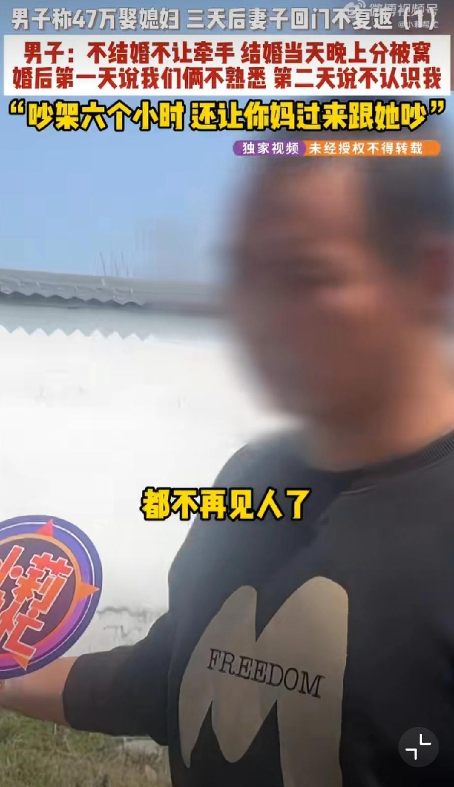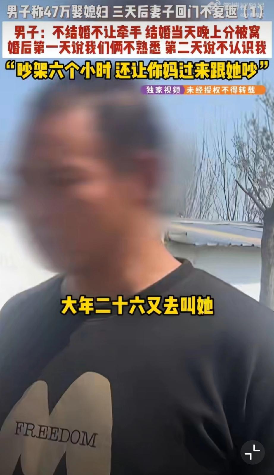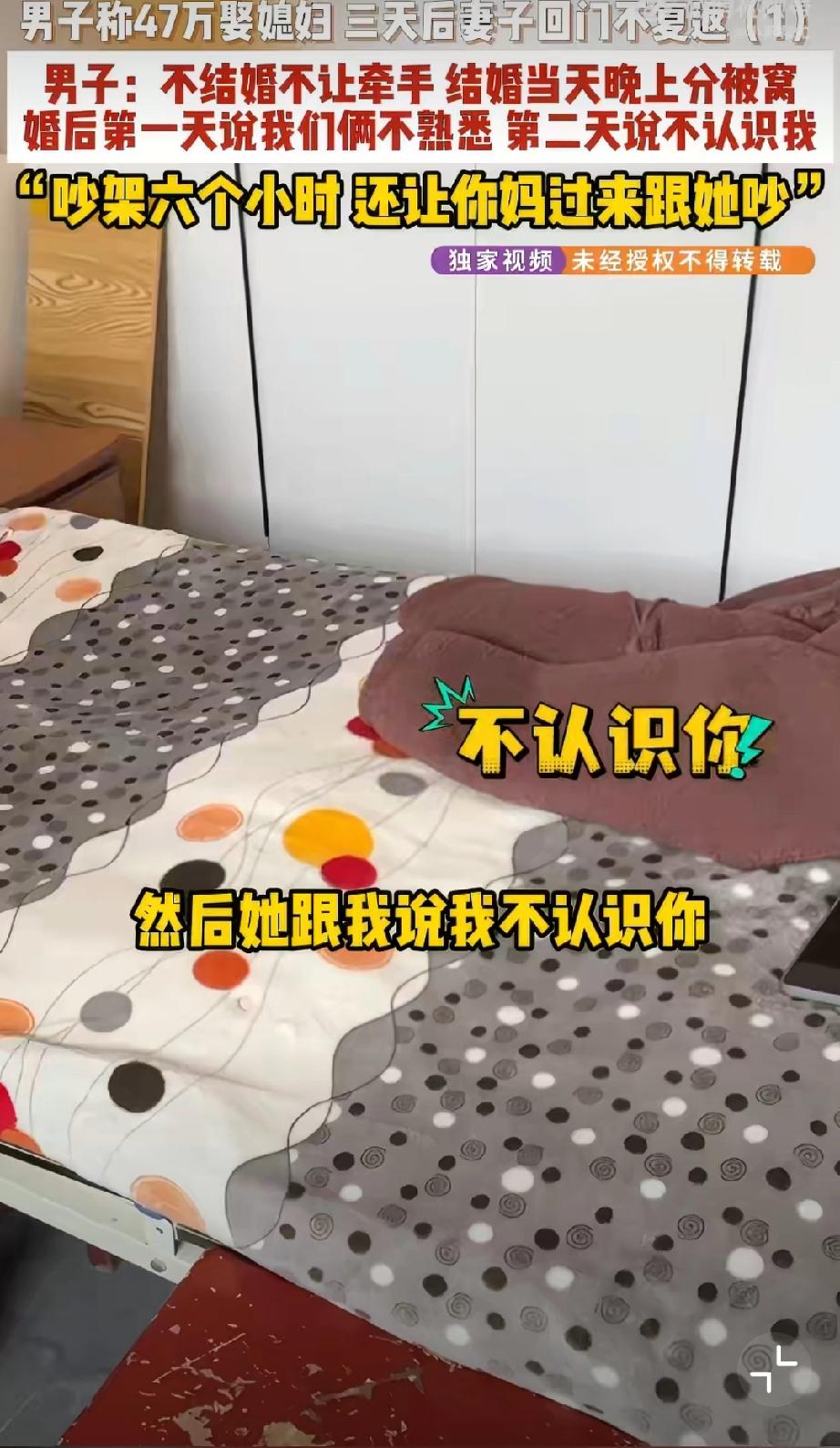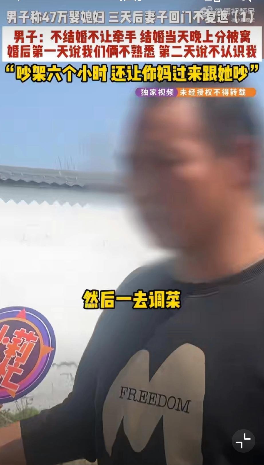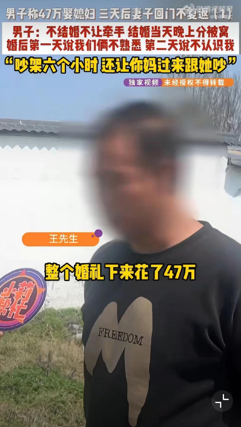 结婚3天新娘称去调凉菜一去不返[捂脸]看了大概,基本是彩礼陷阱。男方花了47万,光彩礼就40万。女方婚前拒绝接触、婚后拒绝同房。结婚3天女方跑了,让其还彩礼,女方让男方走法律程序…可是,法律程序真的那么好走吗?走了程序真能全额归还吗?另外酒席、时间成本也完全被淹没了…看看媒体之前做的“彩礼陷阱”深度专访,国内彩礼引发的离谱问题,离谱到我都不想说啥了,司法界真的熟视无睹吗?哎…婚姻彩礼观 彩礼过高问题 彩礼危害