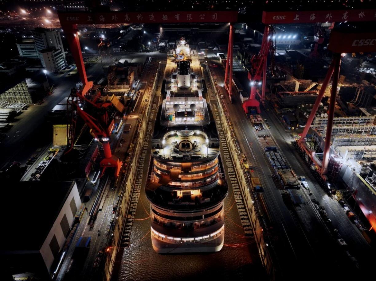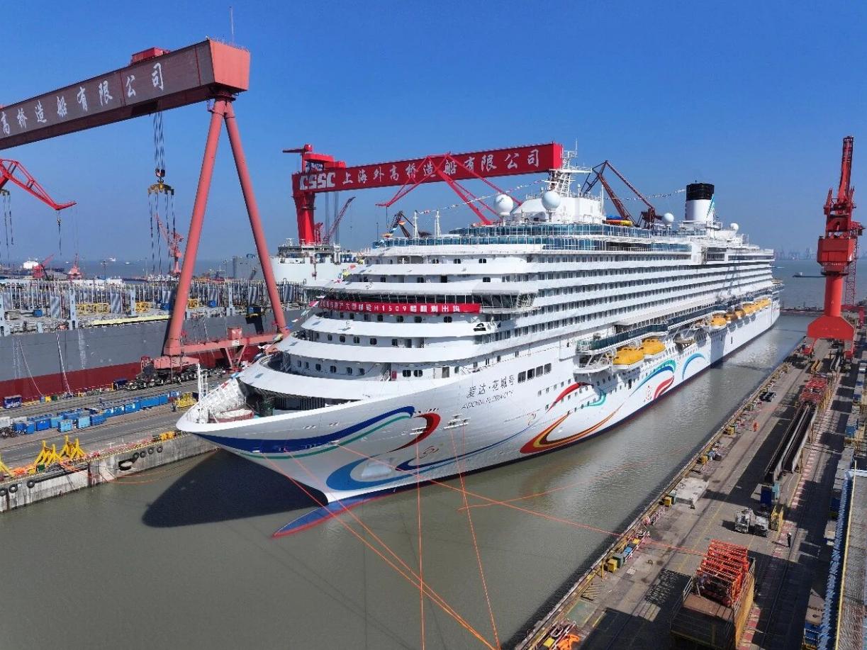 【南沙的“爱达·花城”号邮轮提前看】第二艘国产大型邮轮“爱达·花城”号(H1509)在中国船舶集团旗下上海外高桥造船有限公司顺利出坞,全面转入码头调试阶段。根据计划,“爱达・花城”号将在今年5月底出海试航,预计2026年底前正式交付。 “爱达·花城”号14.19万总吨,总长341米,型宽37.2米,最大载客人数达5232人。船长比“爱达·魔都”号增加了17.4米,公共区域和户外活动休闲区域面积也分别增加了735平方米和1913平方米,达到25599平方米和14272平方米。 “爱达·花城”号外观和内装设计融入了岭南文化元素,旨在为游客带来更具岭南地域特色的体验。与“爱达·魔都”号相比,“爱达·花城”号的阳台房间数量一样,但是优化升级了房间家具布置,同时新增了多种房型供乘客选择。 全船智能控制系统和公共娱乐空间,都将融入当前非常流行的人工智能元素,为游客带来更具科技感的度假体验。 餐饮方面,“爱达·花城”号将增加更符合中国消费者口味的饮食供应,其中包括具有岭南特色的粤菜和广式早茶。