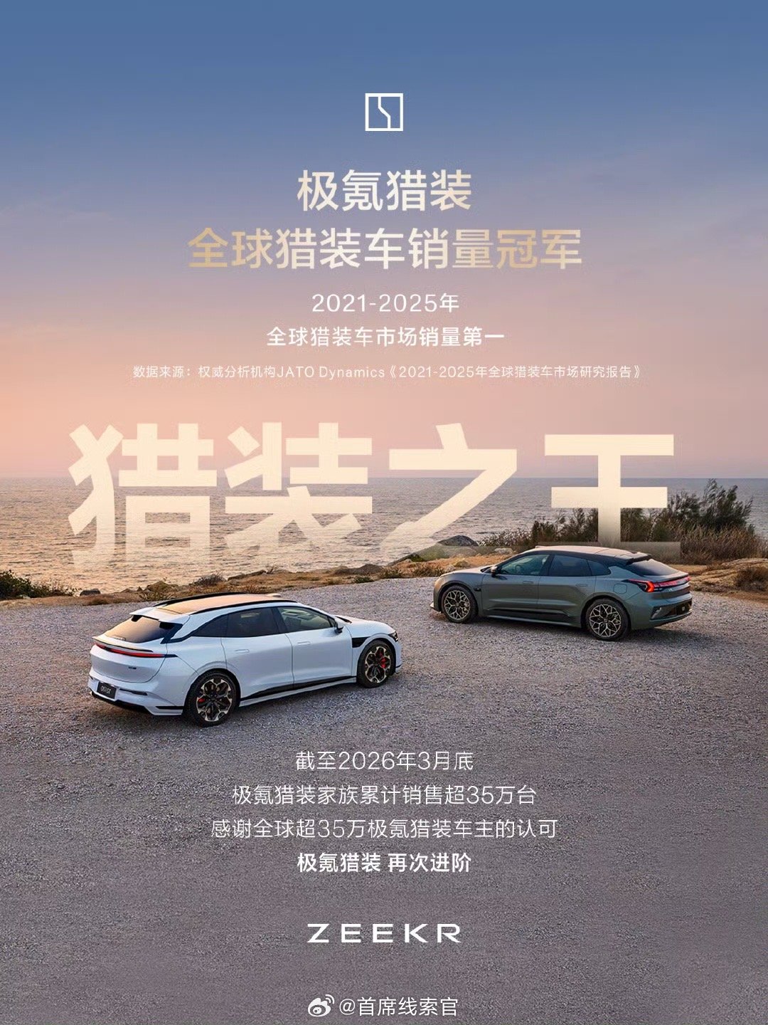 极氪猎装家族(001/001FR/007GT)登顶全球猎装车销量第一 。