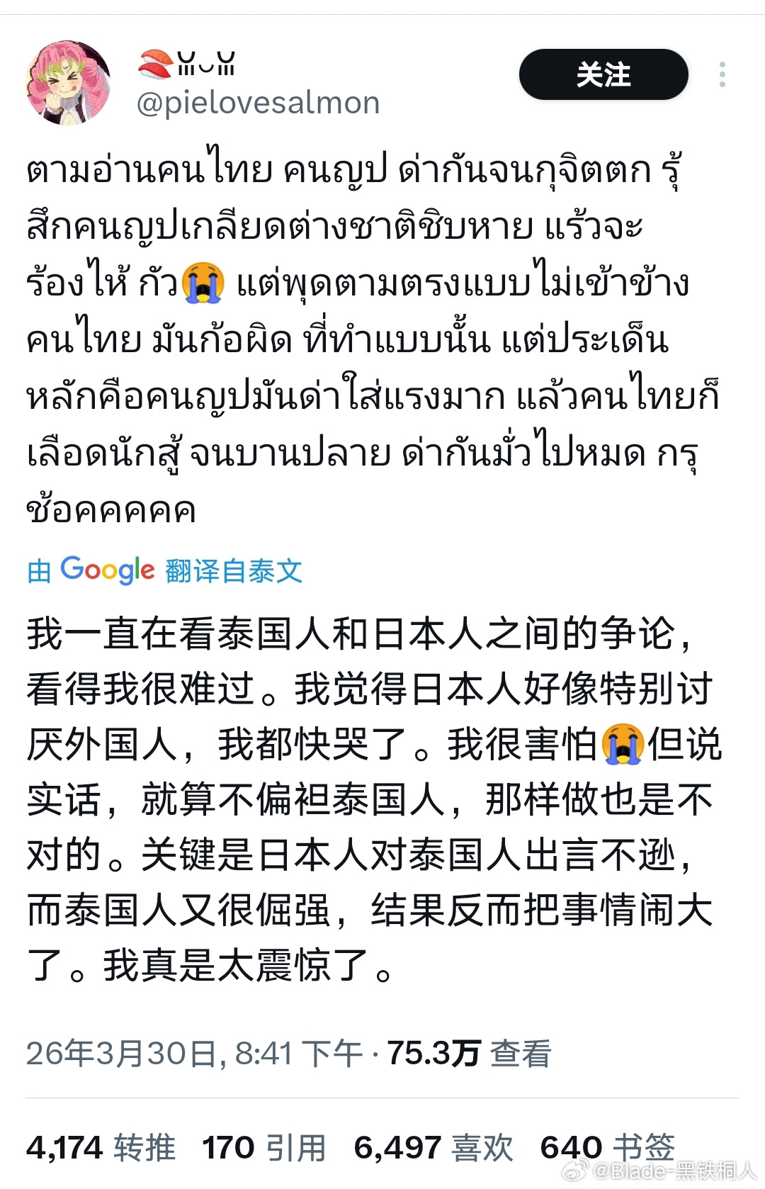 推特(X)上有个叫 hbrkin1111 的日本网友发帖抱怨说,有几个泰国游客在