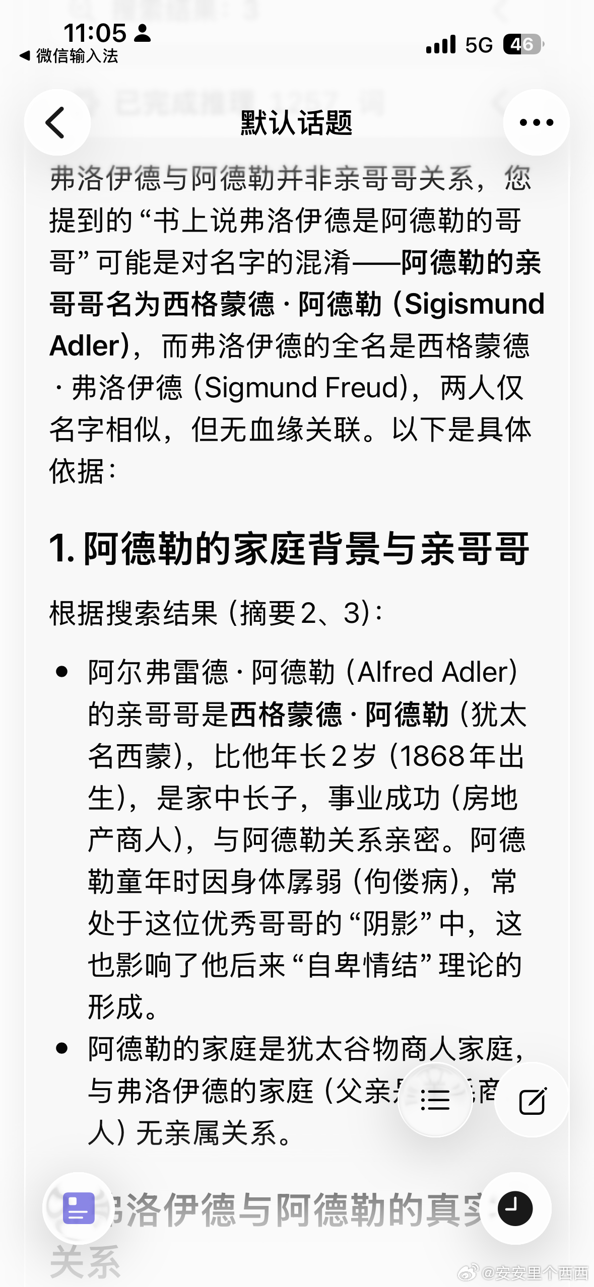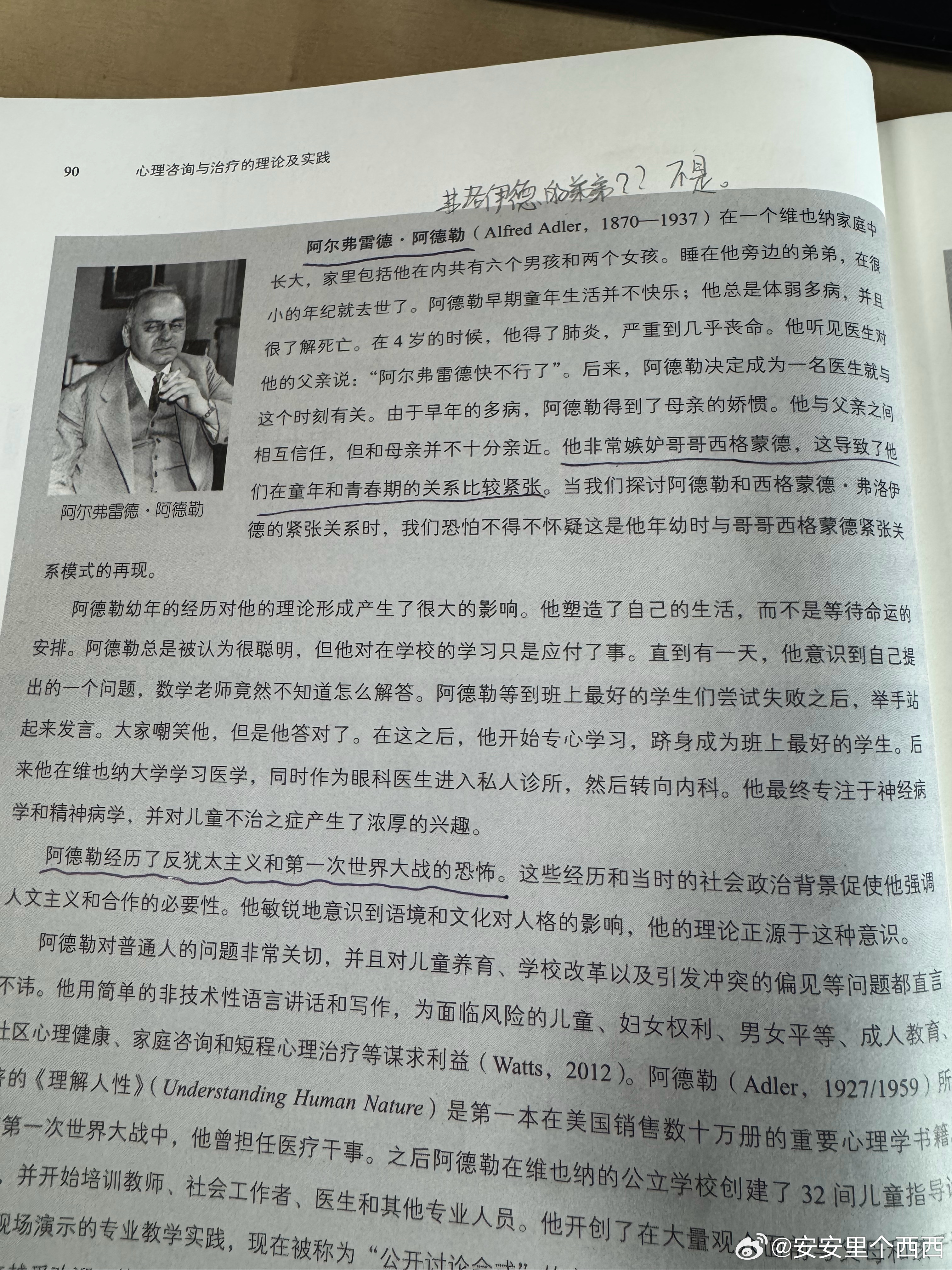 看到图三阿德勒的哥哥也叫西格蒙德,再看了下孩子数量,以为此西格蒙德就是彼西格蒙德,佛洛依德是阿德勒的哥哥呢,还在那想咋不同姓呀