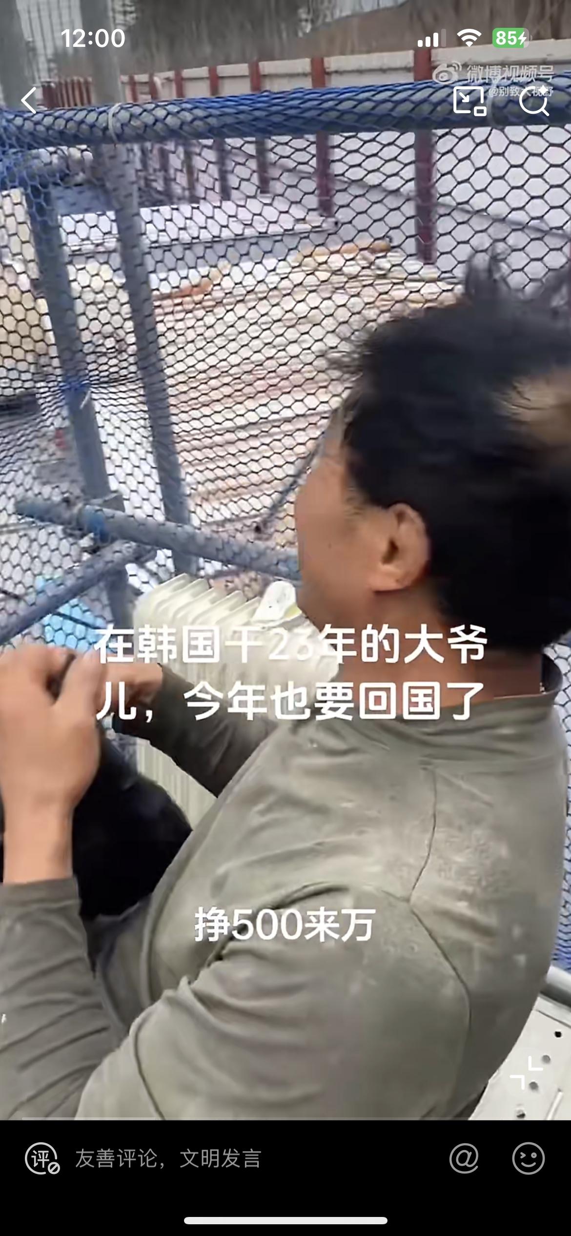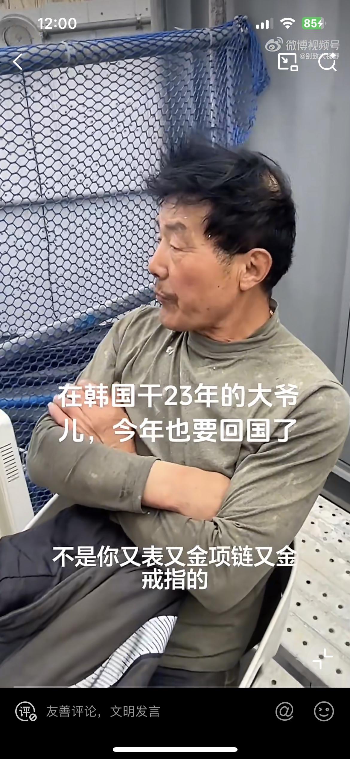 东北大叔韩国工地干了 20 多年,赚了 500 多万,准备回国养老,大金链子手表戒指都备齐,回来可以充大款了。大爷在韩国工地干活,一干就是 20 多年。每天起早贪黑,非常努力。偶尔抽点烟,不喝酒。挣的钱除了买了一点彰显男人魅力的首饰,其他的都存着。每个月雷打不动的存一两万块,累计下来 500 多万的巨款,准备全部带回家养老。看大爷的面相和国内工地的农民工真是天差地别。