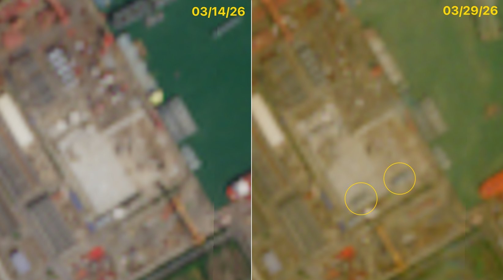 图二是之前在南方某厂生产的野牛级卫星图。