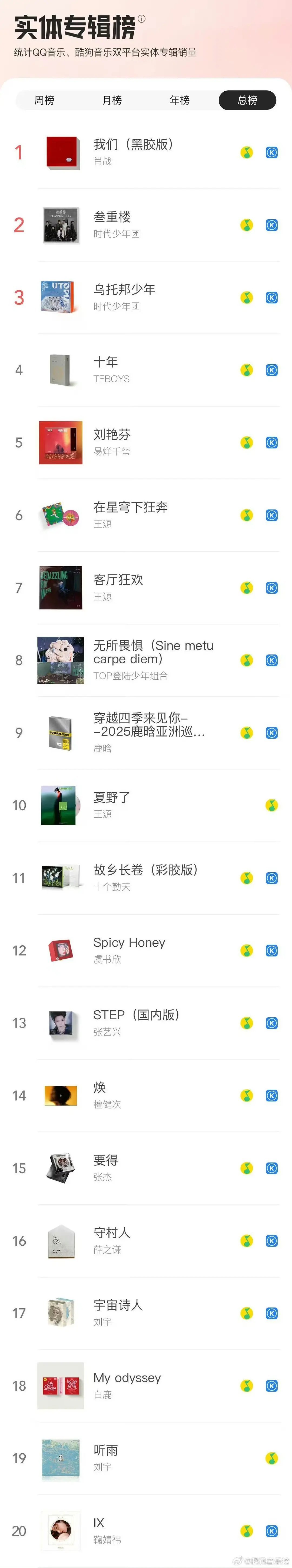 专辑表来咯,歌手出专辑正常,非歌手出专辑通通割王,圈到吓人!!上面☝️有个人唱的