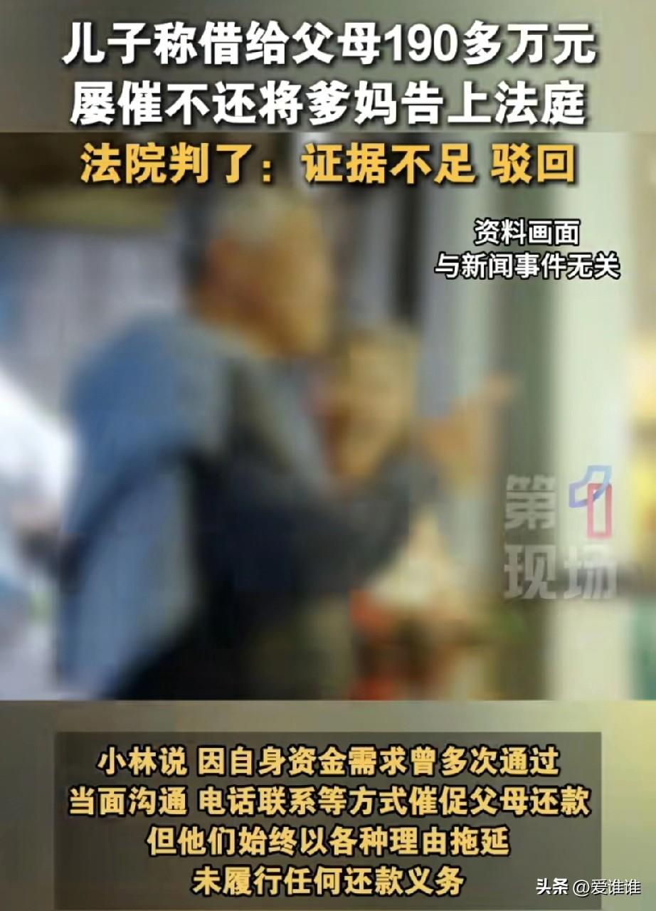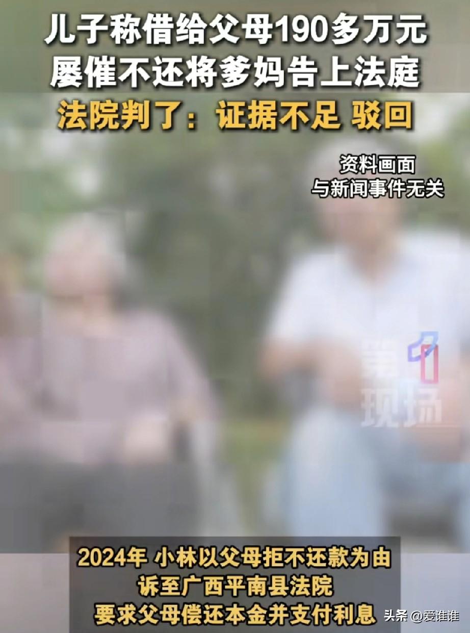 父母因生意需要向儿子借了190万元,一借就是12年,当儿子需要钱,找父母要钱时父母却一再拖延,就是不还,儿子无奈向法院提起诉讼! 2012年,广西平南县的小林,看到父母做生意缺钱、家里开销也紧张,就爽快地把190万元借给了他们,当时他觉得是一家人,没有写借条,也没有签任何协议,连转账时都没备注“借款”二字,只是口头说好了是借的。 钱转过去之后,一晃就是十二年,这期间,小林从没催过父母还钱,父母也一分没还,双方一直保持着沉默,直到2024年,小林自己需要用钱了,才开始跟父母沟通、打电话,希望他们还钱。 可这次父母的态度变了,找各种理由推脱,实在没办法,小林只好把亲生父母告上法庭,要求他们归还190万本金和利息。 法院审理时指出,要认定借贷关系成立,必须同时满足两个条件:一是双方都明确同意是“借”,二是钱确实给了对方。 小林虽然能证明钱转给了父母,但拿不出任何证据证明当时双方说的是“借”,没有借条、没有收条,转账备注也是空的,更关键的是,十二年间没有任何催款或还款的记录,这跟正常的借贷习惯不太一样。 后来,小林母亲单独写了一份还款承诺书,但父亲并没有签字,而且父亲从2018年起就跟家人分开住了,联系很少,所以这份承诺书也不能代表父母的共同意思。 最终,平南县法院认为小林的证据不足,驳回了他的诉讼请求,小林不服上诉,2026年3月3074日二审也维持了原判。 有人同情小林,觉得父母不还钱有违伦理;也有人认为子女帮衬父母很正常,为钱告父母太伤感情。 法律人士则提醒:亲情不能替代法律凭证,亲属之间借钱也要写借条、留备注、存好凭证,否则很可能因为拿不出证据而输掉官司,这场官司,输了的不只是钱,更是一家人的亲情!