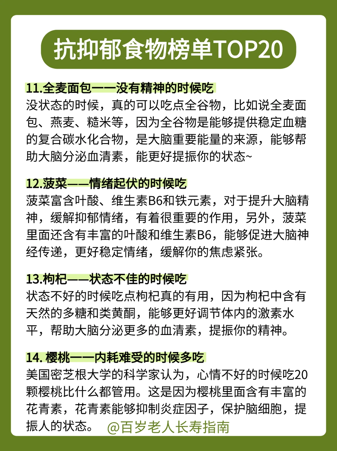真心提醒:全球抗抑郁食物榜单Top20(收藏)