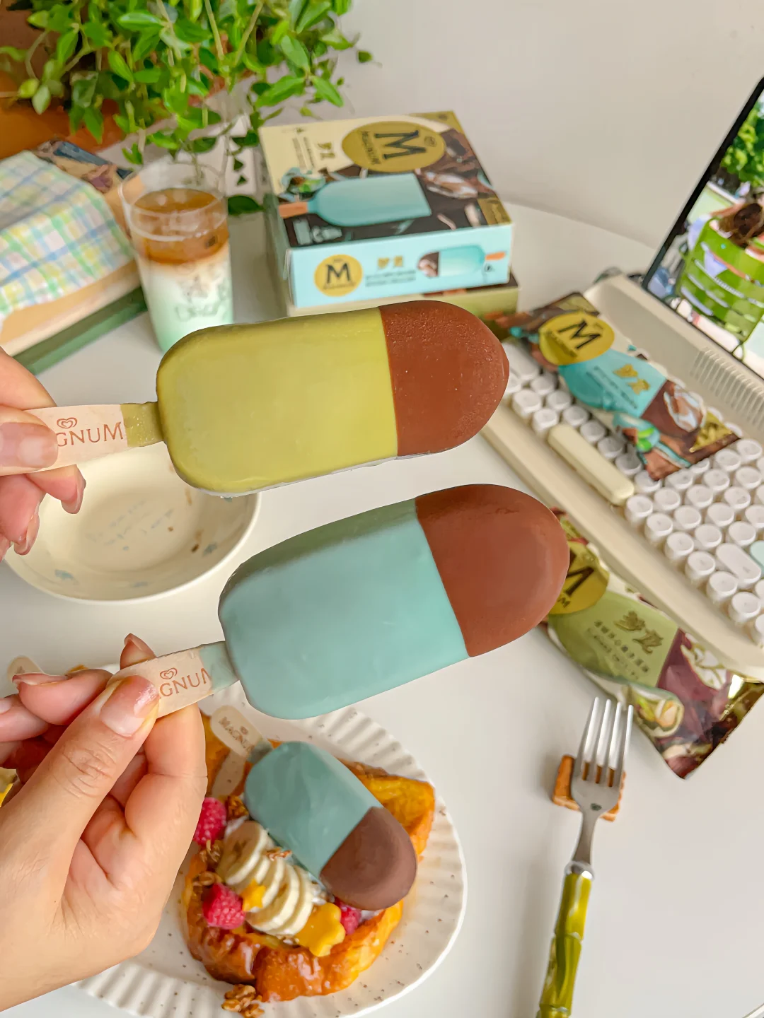 3.搭配希腊酸奶和喜欢的水果 在最后放上梦龙巧克力冰淇淋即可