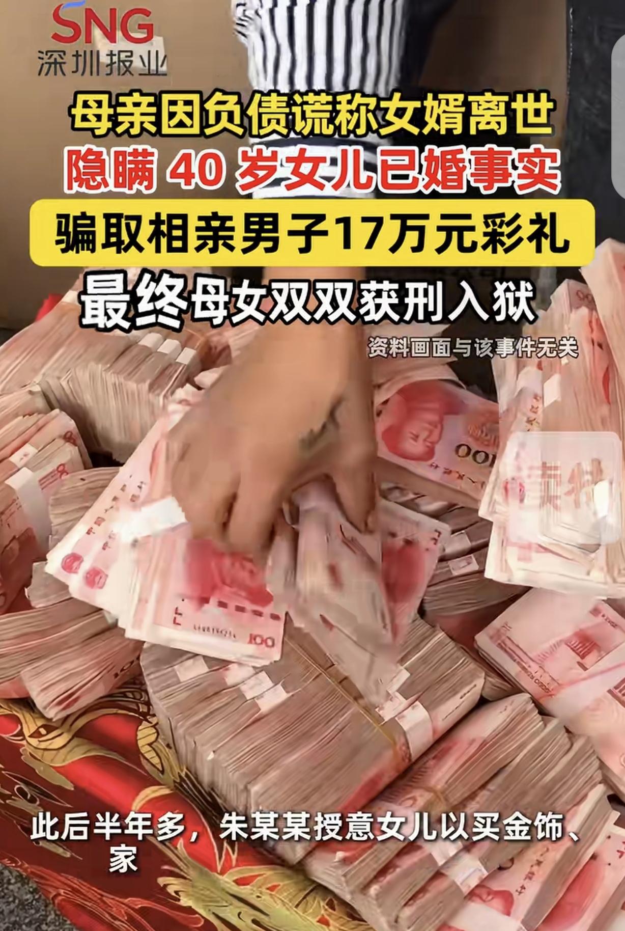 “上梁不正下梁歪!”湖北通山,一女子欠了一屁股债,她趁女婿外出打工,竟然“一女二嫁”,谎称女婿死了,让40岁的女儿跟别人订婚,骗了170000万彩礼,然后母女俩尽情挥霍,最后悲剧了。 徐某怎么也没想到,自己会跟着母亲一起蹲大牢,只因为一时糊涂,配合母亲演了一出“一女二嫁”的荒唐戏码。 徐某的母亲朱某某,是个爱折腾的人,把家里的积蓄挥霍空了,也不老实,继续东挪西借。 时间长了,她欠下了一屁股债,债主整天对她围追堵截,让她惶惶不可终日。 看着家里乱糟糟的局面,朱某某心里打起歪主意,她盯上了自己的女儿。 彼时,女婿在外打工,常年不在家,女儿则在家照顾孩子,这正好是个机会。 朱某某开始散步消息,说女婿出意外身故,女儿孤儿寡母生活无以为继,她四处托人给女儿介绍对象。 没多久,还真有媒人牵线,介绍了一个老实巴交的40岁光棍汉。 朱某某拉着女儿,又是哭又是劝,说只要骗到彩礼,就能还清家里的债务,以后日子就能好过了。 徐某架不住母亲软磨硬泡,又看着家里的窘境,鬼迷心窍地答应了。 接下来,母女俩开始了精心的表演。徐某故意在光棍汉面前装出一副可怜兮兮、无依无靠的样子。 朱某某则在一旁帮腔,说女儿命苦,只想找个老实人过日子。 光棍汉见徐某长得还不错,又是一副急需依靠的模样,心里动了心,没多想就答应了这门亲事。 按照当地的习俗,光棍汉给了母女俩17万元的彩礼。拿到钱的那一刻,母女俩乐开了花,早把良心和道德抛到了脑后。 她们拿着这笔钱,先是还清了一部分债,然后就开始尽情挥霍,买衣服、买化妆品,日子过得好不潇洒。 可纸终究包不住火,假的真不了,警方很快就介入调查,把母女俩的把戏拆穿了。 光棍汉得知自己被骗,又气又急,赶紧要求退还彩礼。 法院审理后认为,朱某某和徐某以非法占有为目的,虚构事实、隐瞒真相,骗取他人财物,数额巨大,已经构成诈骗罪。 最终,朱某某被判有期徒刑3年6个月,徐某被判有期徒刑1年10个月。 拿到判决书的那一刻,母女俩才幡然醒悟,后悔不已。 她们不仅把自己送进了监狱,还毁了女儿的名声和家庭。好好的日子,就因为一时的贪念和糊涂,落得个鸡飞蛋打的下场,真是可悲又可叹。 这起事件也给所有人敲响了警钟,君子爱财,取之有道,千万别想着走歪门邪道,否则只会自食恶果。 《刑法》第266条规定,诈骗公私财物数额巨大的,处三年以上十年以下有期徒刑,并处罚金。 本案中,朱某某母女虚构女婿死亡事实,以“一女二嫁”为幌子骗取光棍汉17万元彩礼,属于典型的虚构事实型诈骗。 其行为完全符合诈骗罪的构成要件,主观上具有非法占有他人财物的目的,客观上实施了虚构事实、隐瞒真相的行为,且数额巨大。法院判决有法可依。 对此,你怎么看?