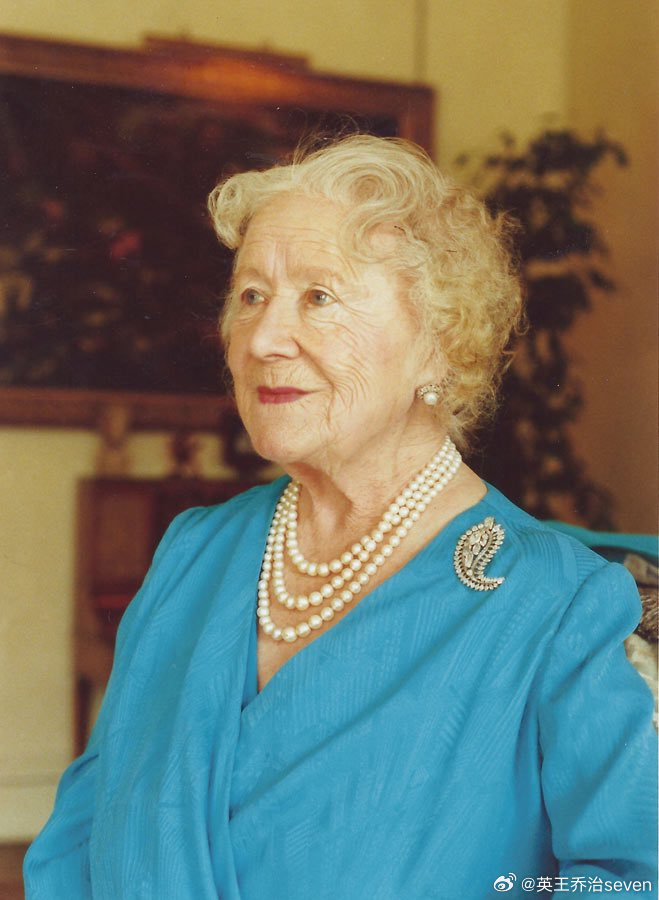 【回顾】34 years ago. Portraits of Queen Elizabeth The Queen Mother wearing the Cartier Diamond Palm Leaf Brooch were taken by Alexei Maximov at Clarence House on March 31, 1992.