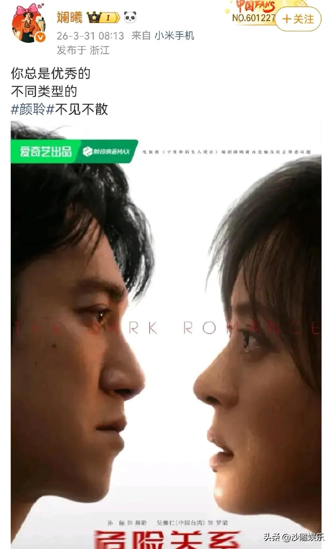 眉姐姐斓曦,激动发文! 3月31日一大早,“眉姐姐”斓曦突然在社交平台更博,竟然是为了给老搭档孙俪的新剧《危险关系》打call 。 本以为这只是一次普通的营业,没想到配文直接戳中了大家的泪点。没有华丽的辞藻,就两句大白话:“你总是优秀的,不同类型的”。 就这一句话,直接把网友拉回了那个眉庄与甄嬛相依为命的深宫岁月。谁能想到,这么多年过去了,戏里的“眉嬛”CP,戏外竟然还这么铁? 先看斓曦的配图,她晒的是孙俪新剧《危险关系》的海报。孙俪饰演的颜聆眼神里全是戏,张力十足 。 再看她的文案,与其说是宣传,不如说是一个老友发自内心的“炫耀”。这种“我姐妹超厉害”的骄傲感,简直藏不住。 更绝的是孙俪的回复:“谢谢我的好姐姐。我们‘眉嬛’超长售后” 。 就这一来一回,大家瞬间“破防”了。 在如今这个“互吹”成风的娱乐圈,很多明星的宣传文案都是复制粘贴、完成任务。但斓曦没有,她甚至没有去细数剧名和角色名,只是单纯地夸孙俪这个人。 这种“词穷”恰恰是因为太熟了,熟悉到不需要打官腔,一句“不同类型”就概括了孙俪这些年的野心。要知道,当年的“嬛嬛”是宫斗冠军,现在的孙俪在《危险关系》里演的是一个被PUA的破碎单亲妈妈 。从女王到猎物,这跨度,也只有真朋友才看得见。 《甄嬛传》里的眉庄,高冷、刚烈,宁可玉碎不为瓦全;而嬛嬛则是那个懂她、护她的人。剧里,眉庄死了,成了甄嬛心中永远的“白月光”;剧外,斓曦活得好好的,还出来力挺孙俪。 网友神评:“剧里眉姐姐护了嬛嬛一辈子,剧外斓曦也要护着孙俪。 ”这种跨越时空的羁绊,太杀回忆杀了 。 孙俪这次的新剧《危险关系》确实值得期待。它聚焦的是“情感操控(PUA)”,孙俪饰演的颜聆在剧中被“完美男友”精神控制,最后觉醒反击 。 正如网友所说: “看预告片的时候,孙俪那种破碎感太绝了,完全看不到甄嬛的影子。斓曦说的‘不同类型’,大概就是指孙俪又把自己的舒适区砸了吧。” 说真的,在娱乐圈这个名利场,很多演员恨不得一辈子吃定一个角色,但孙俪偏不。她敢在巅峰期去演一个这么“憋屈”的角色,这是对职业的敬畏。 而斓曦的声援,更是让我们看到了女性之间纯粹的欣赏。不是塑料姐妹花的假笑,而是“你成功了,我真心为你高兴”的坦荡。 有网友感慨: “以前觉得《甄嬛传》是宫斗剧,现在回头看,那是眉庄和甄嬛在冰冷的紫禁城里,互相给对方当人肉暖宝宝。戏外还能延续这份暖意,真的太难得。” 也有人调侃:“斓曦:虽然我这些年也很佛系,但为了嬛嬛,我愿意出来营业!” 不得不说,无论《危险关系》这部剧最后口碑如何,孙俪都已经赢了。 因为她不仅有挑战自我的勇气,还有一个时刻在身后为她摇旗呐喊的“眉姐姐”。 今晚这部剧就要在三大卫视开播了 。冲着这份跨越十几年的情谊,这剧我也追定了!