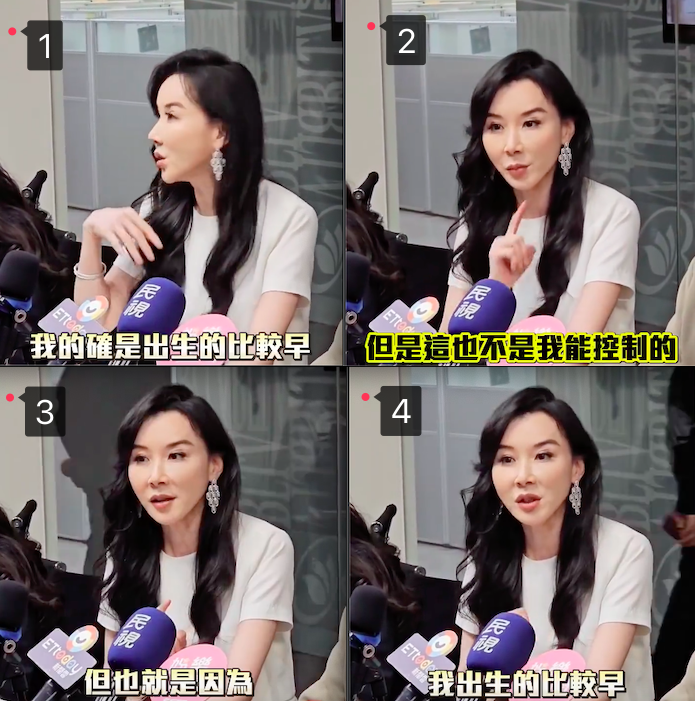 一位男记者和一群女记者围着她问她一些关于年龄的问题,并明确的让她回答她觉得自己到底老不老。