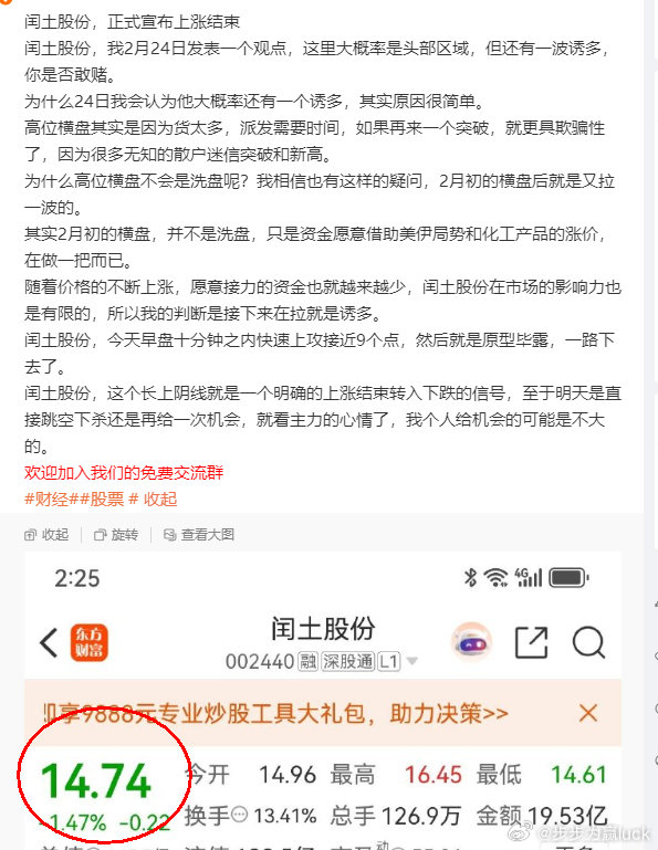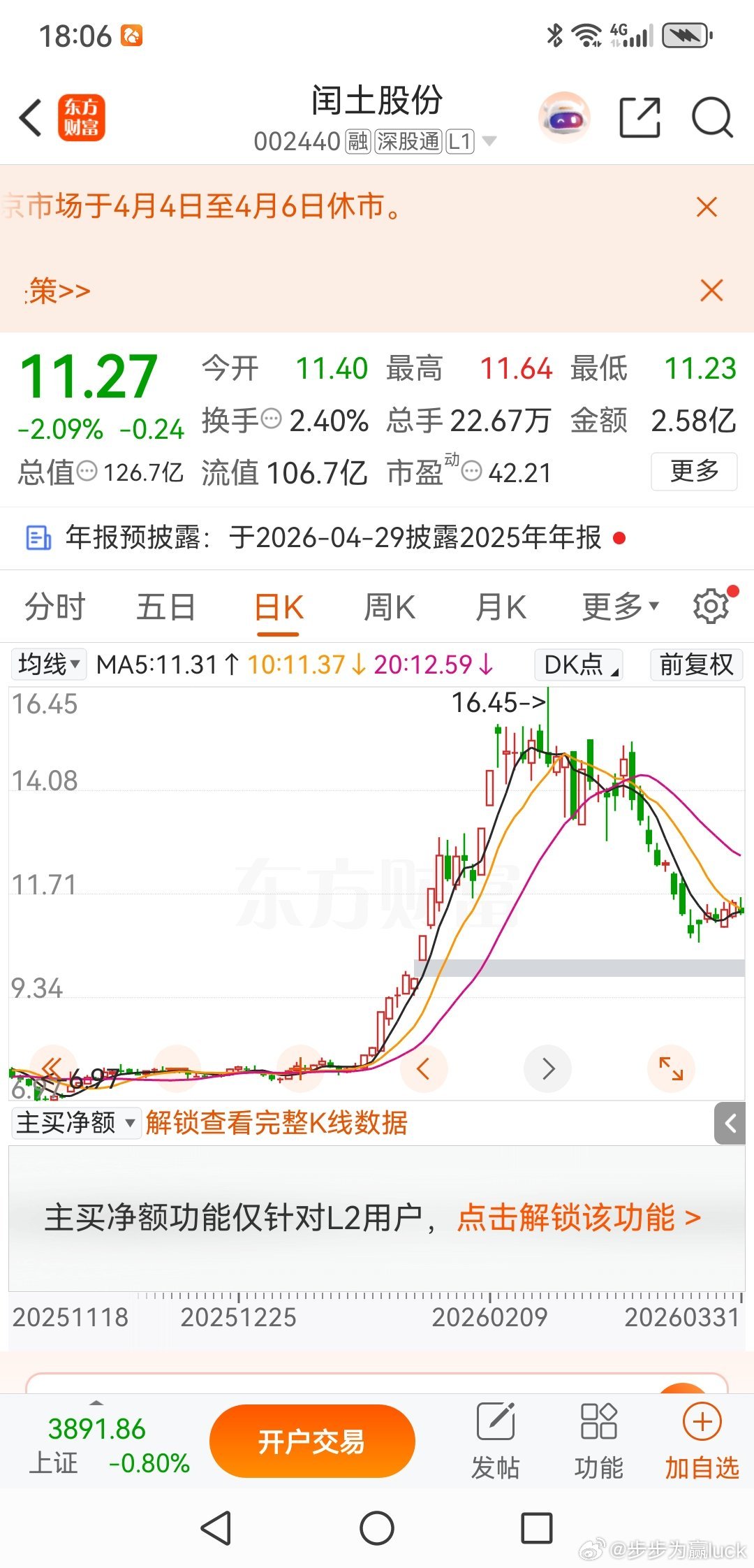 闰土股份,这里依然很难产生有力度反弹闰土股份,我曾在2月24日发文还有最后一冲,2月26日明确指出上涨结束,下跌开始。时间过得很快,眨眼一个月的时间过去,股价来到11.27元这个位置。从目前看股价在60日线附近有企稳的味道,但是这里面也是有一些隐患的。大家必须知道,反弹的前提是大量的止损,目前闰股份的成交每天只有2-3个亿,这就意味着筹码转换速度较低。还有股价在60线附近趴的时间过长,给抢反弹的散户很多充足的时间,我们必须清楚,真正的强力上涨,是不会留太多的时间给散户上车的。我认为这里很难产生有力度的反弹,甚至不排除往下再挖一个坑,所以被套的朋友还不合适去摊低成本补仓,因为要是再挖一个坑,就有可能重仓套死。欢迎加入我们的免费交流群财经股票