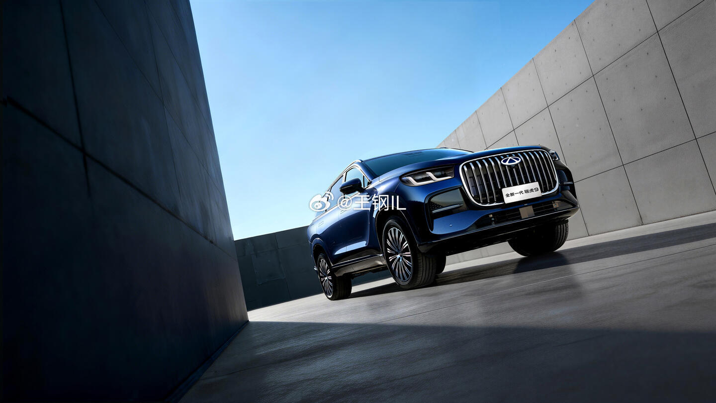 新一代奇瑞瑞虎9官图亮相 预计内饰升级大,外观上,直瀑式镀铬格栅,双L型熏黑日