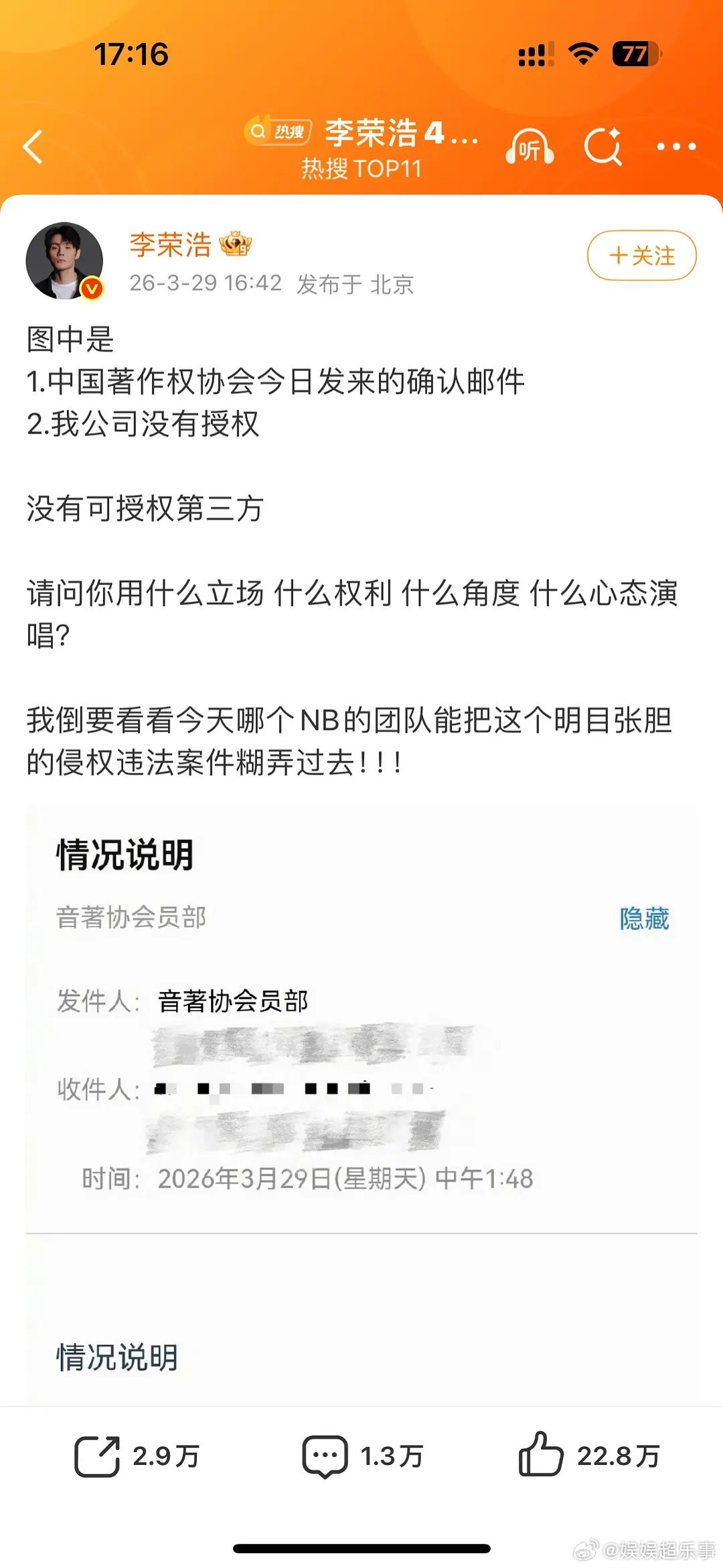 多读书就是有用不信你看李荣浩。3月29号,李荣浩正式发声明,说单以纯在3月28、