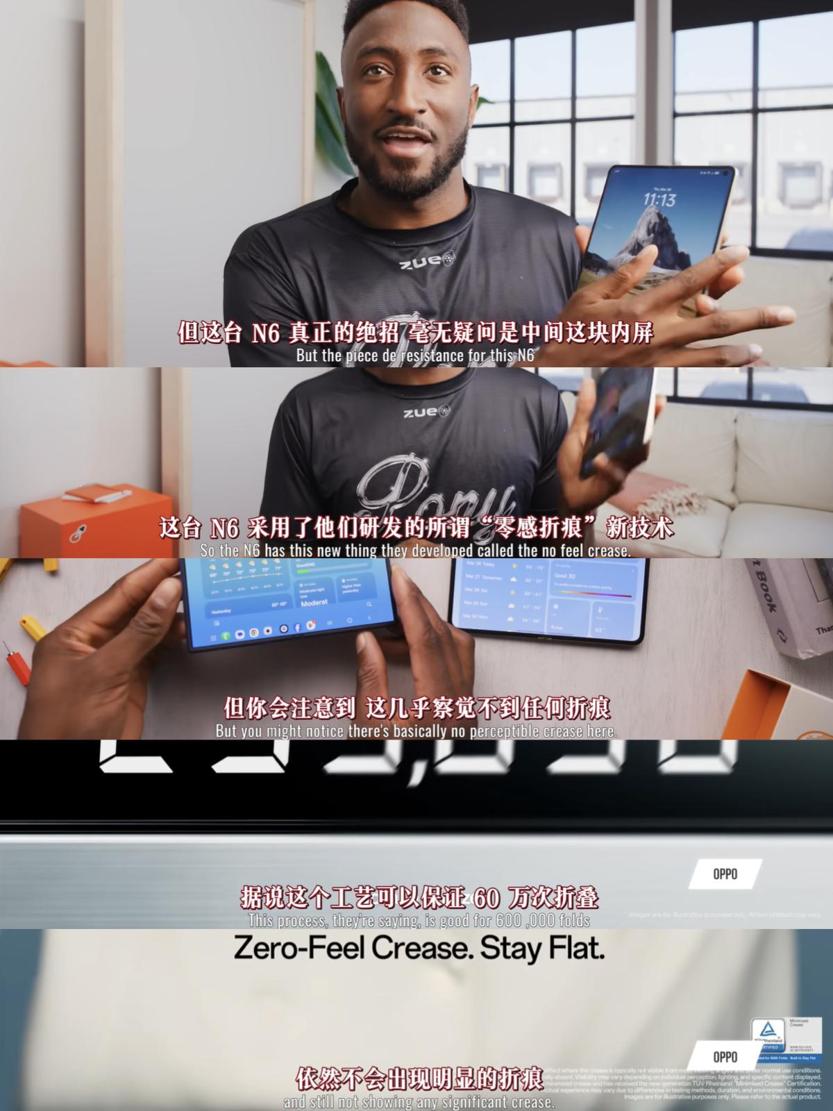 折叠屏巅峰?小黑哥要给OPPO夸害羞了 海外科技顶流媒体MKBHD发了OPPO Find N6的测评视频,没想到啊,他居然这么喜欢国产折叠屏,各种夸的,有没有怎么夸张啊? 按他的说法,OPPO Find N6已经用工业设计,逐一消灭了以往折叠屏的每一个妥协、痛点,是当前折叠屏领域的“巅峰”?这个评价相当高了啊 先是说OPPO把机身尺寸重量控制得很好,用外屏基本能当成直板旗舰用,甚至还把直板旗舰级别的电池、性能、影像等等配置,全部塞到折叠屏里,配置这块挑不出毛病 最主要的是,OPPO内屏做到了几乎无痕,跟他以往用过的所有折叠屏相比,就基本感受不到的,这点他是真的狠狠的夸了 感觉得出来他是真心喜欢啊,好产品放到哪都是好产品!大家怎么看?