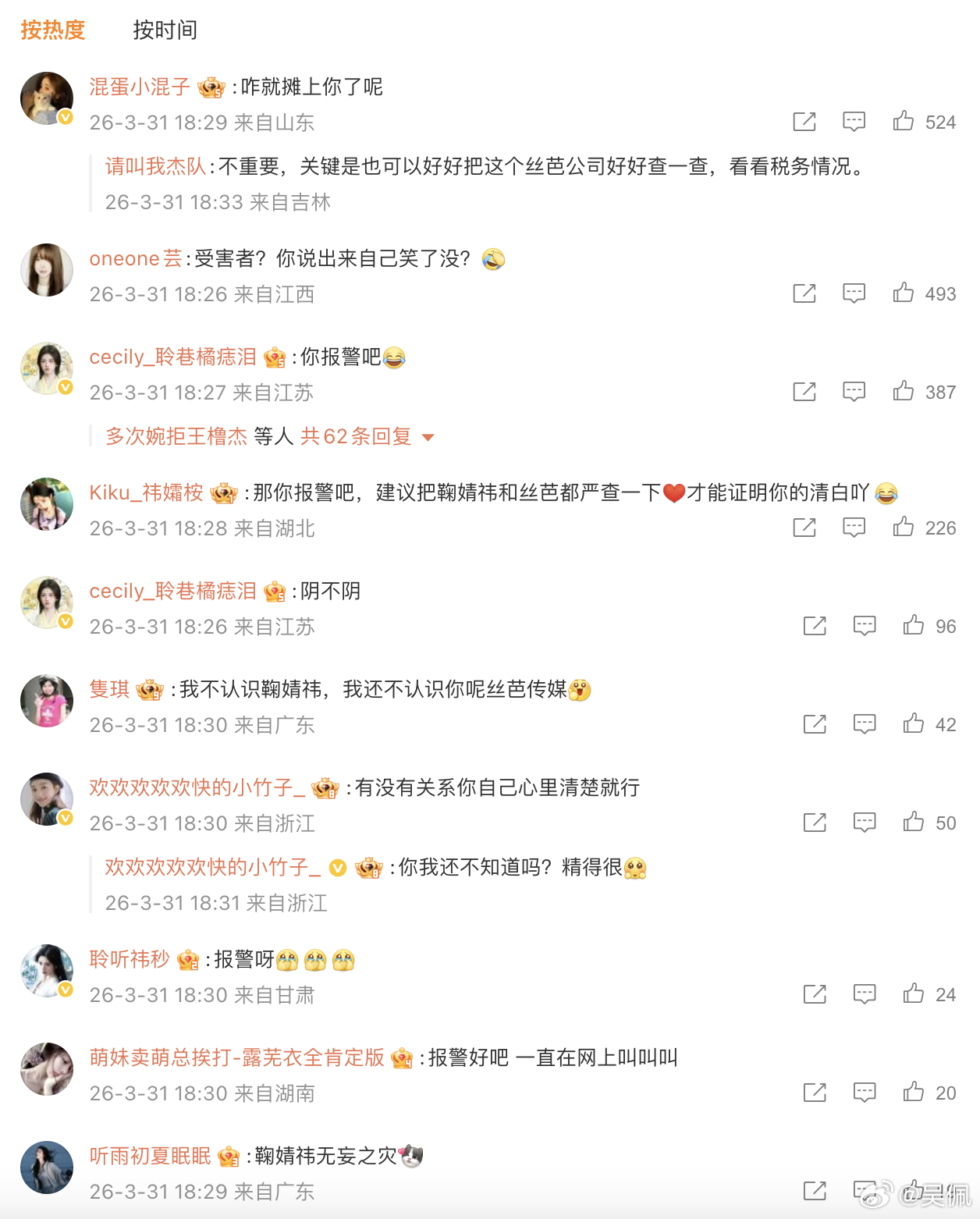 有没有吃瓜吃透的,一两句话说一下这里面是发生了啥事?评论好像一边倒。鞠婧祎已委托律师起诉丝芭鞠婧祎方称绝不姑息丝芭诽谤行为鞠婧祎被曝半年收入不少于5000万