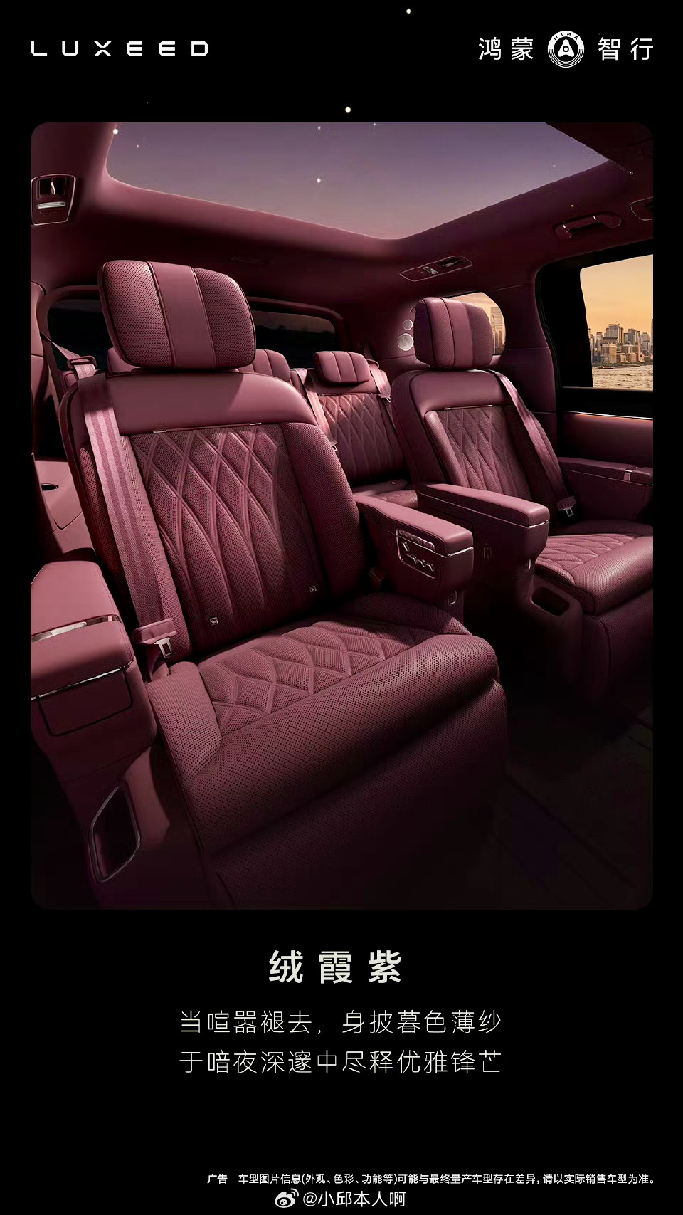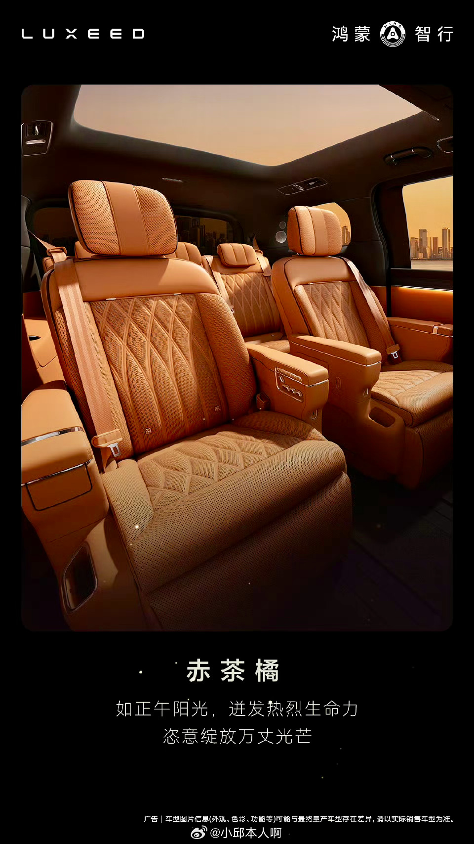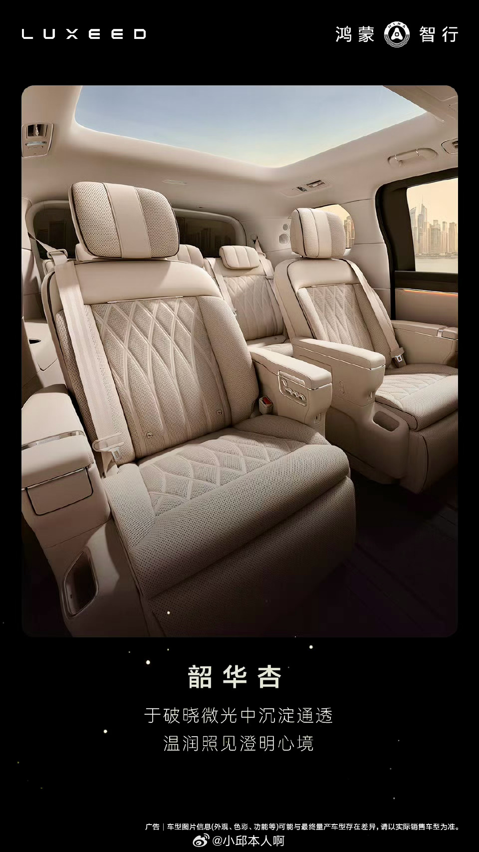 期待智界V9,是鸿蒙智行第一款高端MPV,车内做工很精致,有绒霞紫、韶华杏、赤茶橘三种内饰颜色,用的都是真皮和实木,不管是看着还是坐着,质感都很到位。